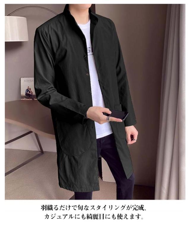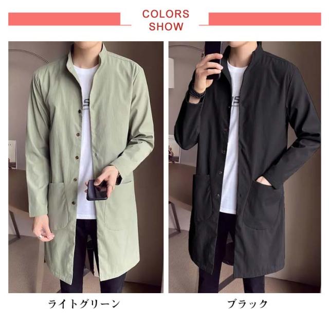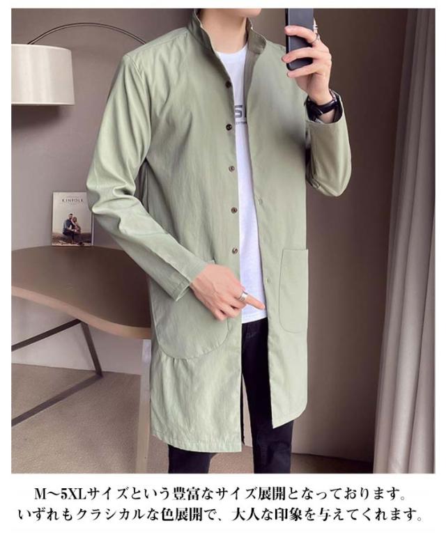 | 上品さとカジュアルな雰囲気をバランスよく漂わせてくれるメンズコート。 タイトめなシルエットで、シブい立ち襟が抜群の存在感を発揮。 やや光沢感のあるトレンチ生地で、若干ハリのある肌触り。 羽織るだけで旬なスタイリングが完成、カジュアルにも綺麗目にも使えます。 独特の素材と統一感のあるデザインでこれからの季節に活躍する事間違いなしです。 M〜5XLサイズという豊富なサイズ展開となっております。いずれもクラシカルな色展開で、大人な印象を与えてくれます。 | |