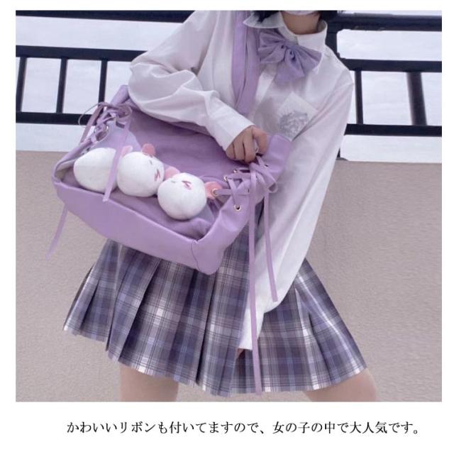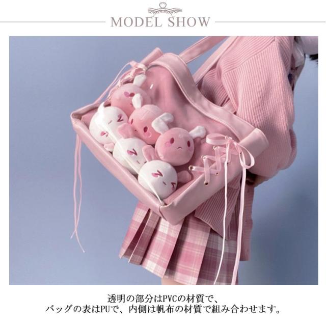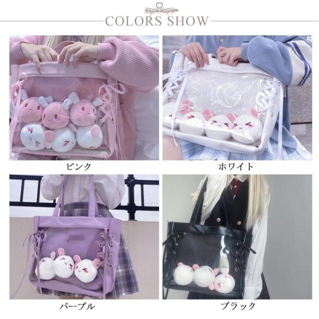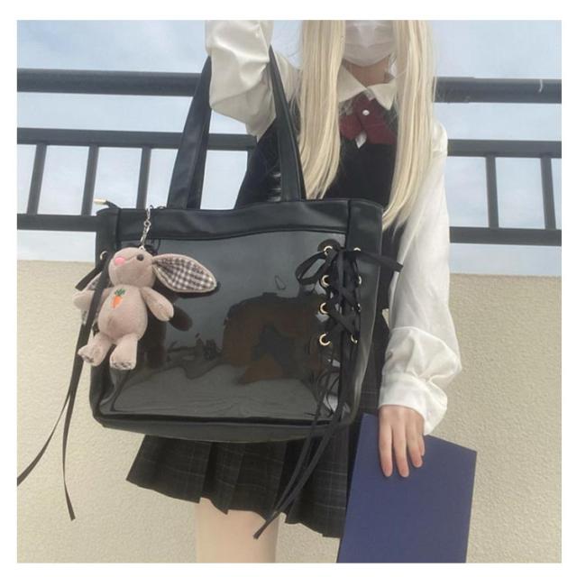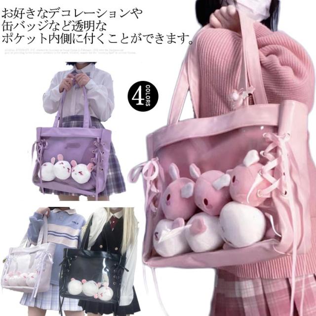 痛バッグ 大容量 レースアップ トートバッグ レディース デコバッグ ビニールトートバッグ 魅せトート 痛バ カバン かわいい PUレザー 透明 肩掛け 手提げ 2way 推し活 ライブ イベント お出かけ 缶バッジ