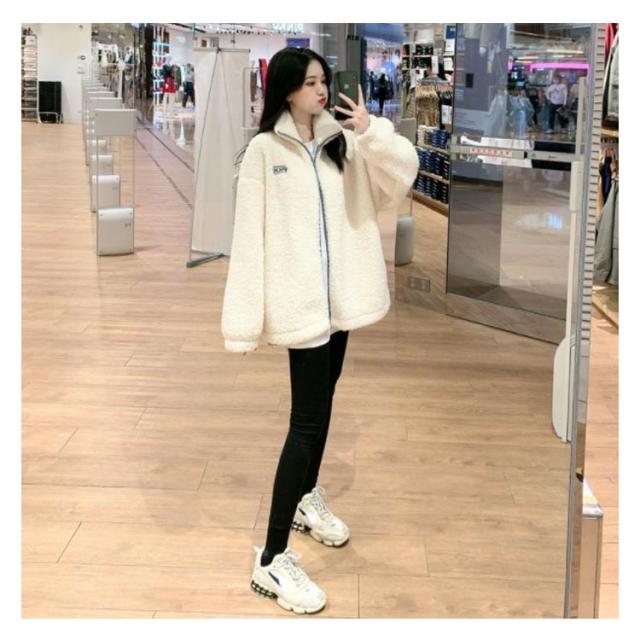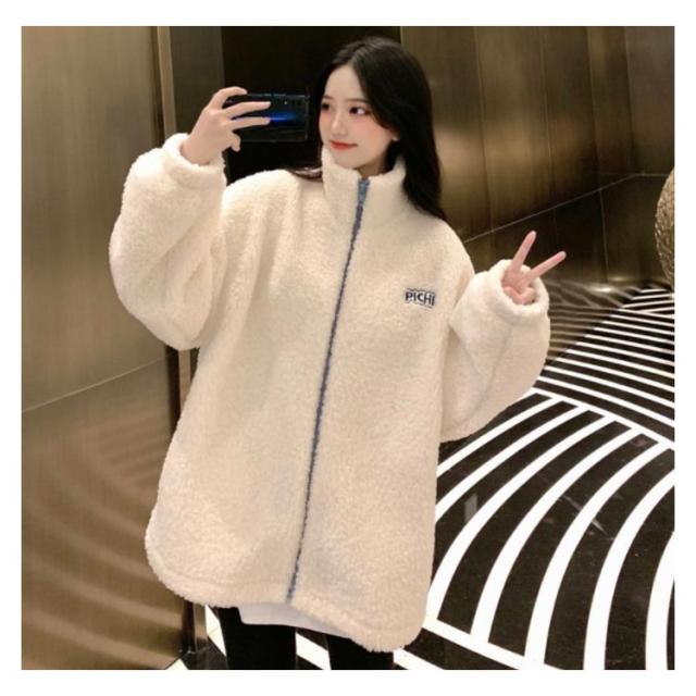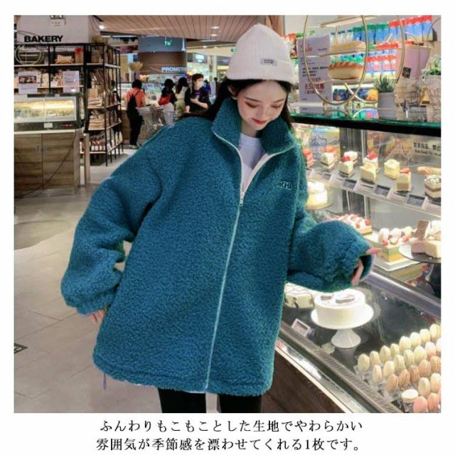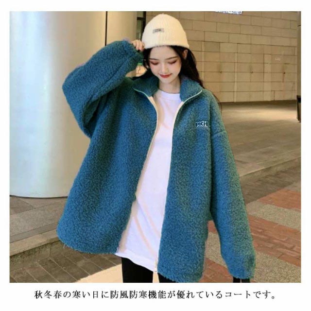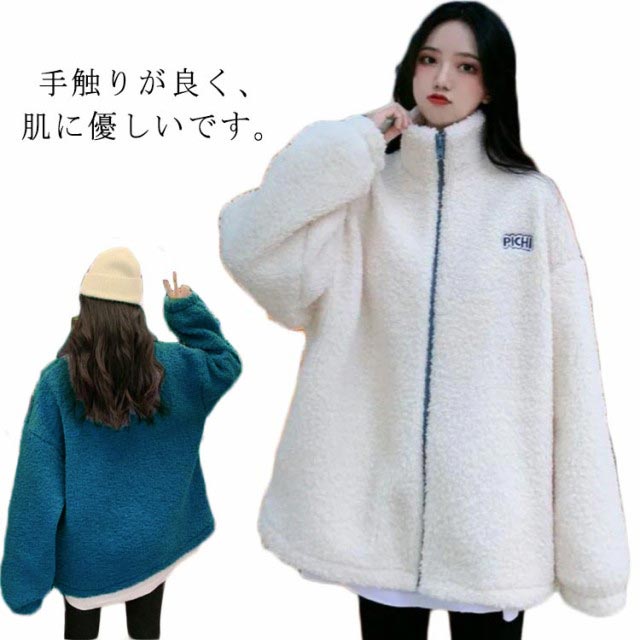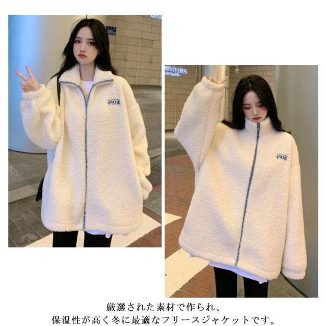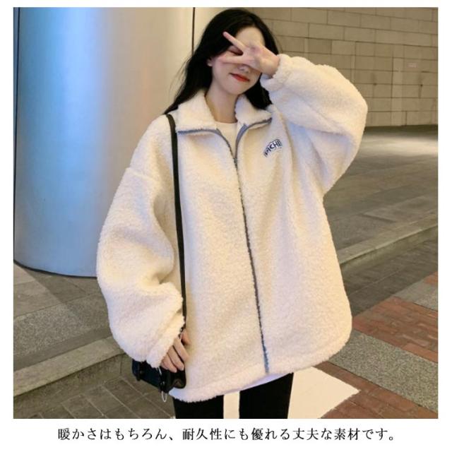ボアブルゾン ボアジャケット ボアコート レディース メンズ ジャケット アウター ボア ブルゾン もこもこ ふわふわ おしゃれ ホワイト 白 ジャケット 防寒コート 春秋 冬 ゆったり アウトドア 暖かい フリース 胸ロゴ あったか ショート丈