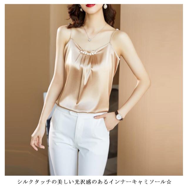 送料無料 インナーキャミソール サテン素材 光沢感 シルクタッチ サテンタンクトップ サテンキャミソール サテンスリップ インナータンクトップ セクシー フォーマル トップス 春夏 レディース