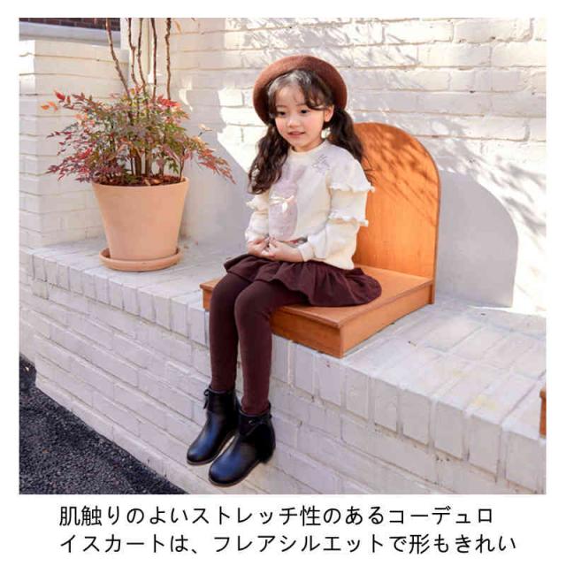 | 活発なお子様も可愛らしく女の子らしくパンツです 肌触りのよいストレッチ性のあるコーデュロイスカートは、フレアシルエットで形もきれい 絶妙なデザイン&サイジングで美脚・脚長効果抜群 肌触りもよくウエストゴムも入って機能性もグッド お出かけにも、保育園や外遊びにも気軽に使えます 裏起毛と裏起毛なしがある、オールシーズンを対応しています | |
