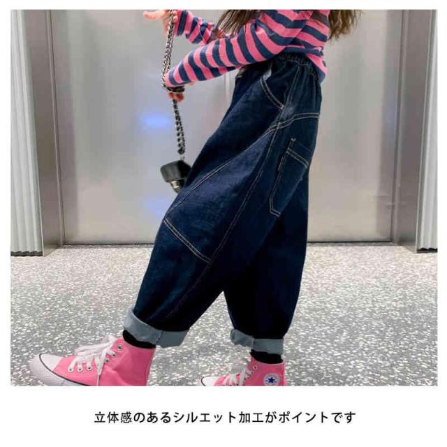 | 女の子デニムパンツ新登場! 伸縮性抜群デニムを使用し足長シルエットにもこだわり! ウエスト総ゴム仕様で楽な履き心地です 立体感のあるシルエット加工がポイントです カジュアルルックで着こなせるのでコーデの幅がグッと広がる一着となっております | |