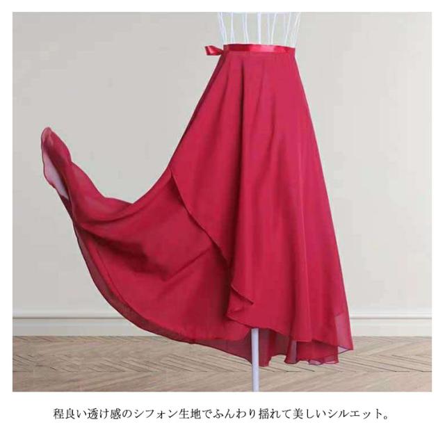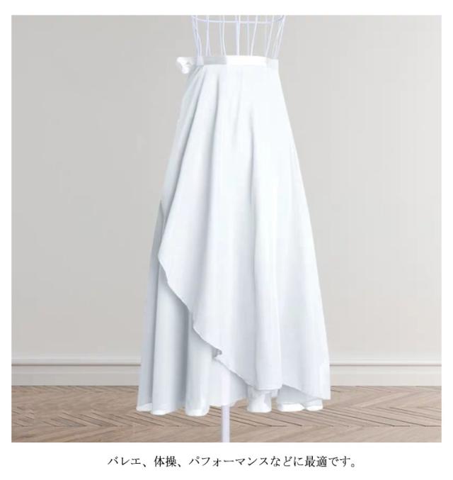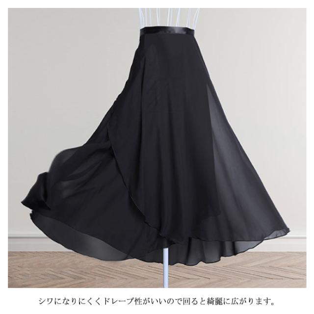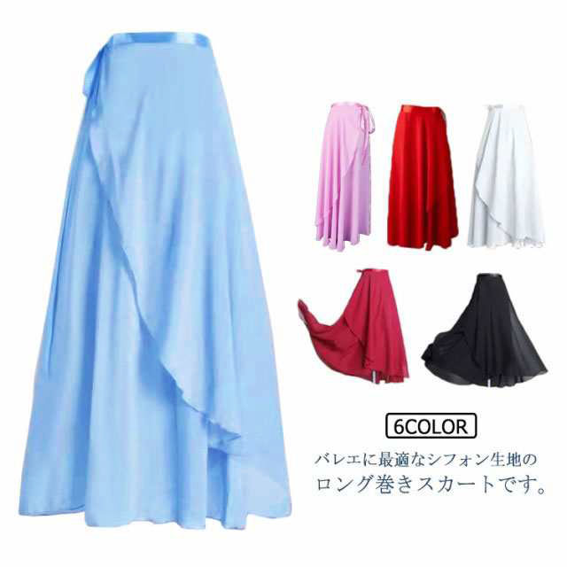ロング丈 シフォン バレエ スカート レディース 巻きスカート 大人用 ダンス衣装 ラテン モダン 社交 ダンスウェア レッスン着 練習着 バレエ用品 白 黒 ブラック ホワイト ワインレッド ピンク ブルー 送料無料