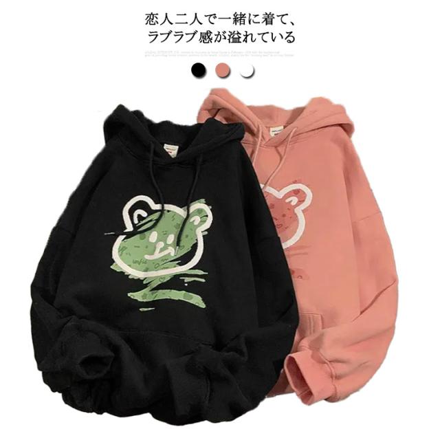 ペアルック パーカー ペアルック カップル お揃い 春秋 春服 秋服 カップル パーカー ブランド プレゼント ペア カップル 服 かわいい クマ 熊 プリント トレーナー おそろい パーカー コーデ メンズ 夫婦 おしゃれ スウェット
