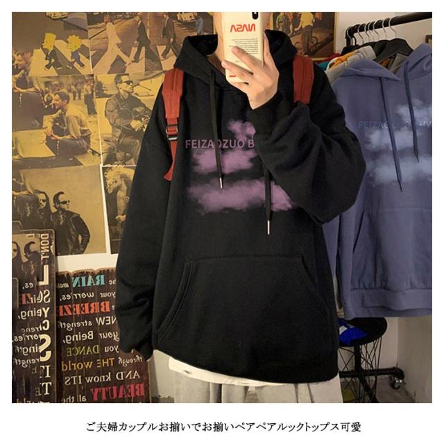 ペアルック パーカー ペアルック カップル お揃い 春秋 春服 秋服 カップル パーカー ブランド プレゼント ペア カップル 服 かわいい プリント トレーナー おそろい パーカー コーデ メンズ 夫婦 おしゃれ スウェット