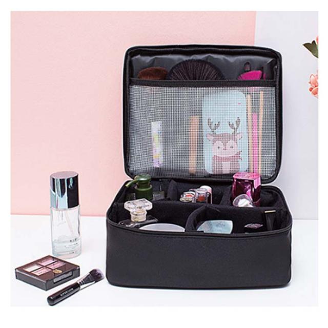 | 散らかりがちな化粧道具をすっきり整頓できる大容量メイクボックス! 内部には仕切り板が付属しており、化粧品の大きさに合わせて自由自在に調整可能。 表面は汚れに強く耐久性の高い素材なので水に濡れても簡単に拭き取れます。 スペースを無駄なく使えて自分のメイク道具に合わせてすっきり収納できます。 自宅で使うのはもちろん、旅行や出張の際でもそのまま持ち運びできます。 | |