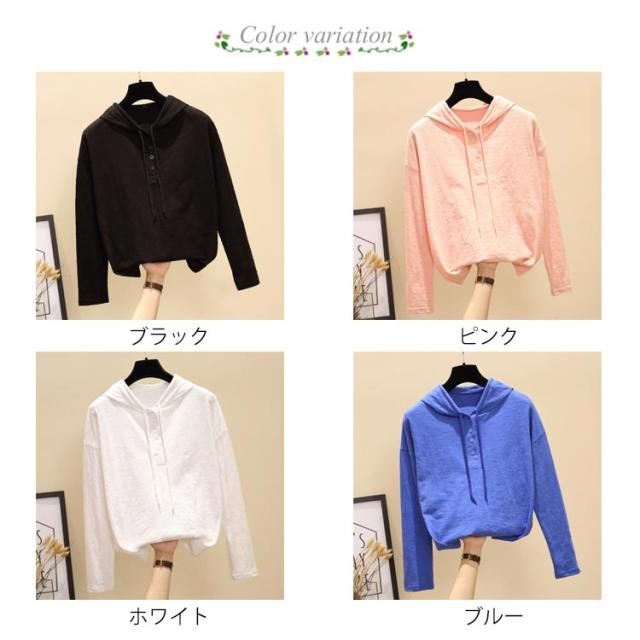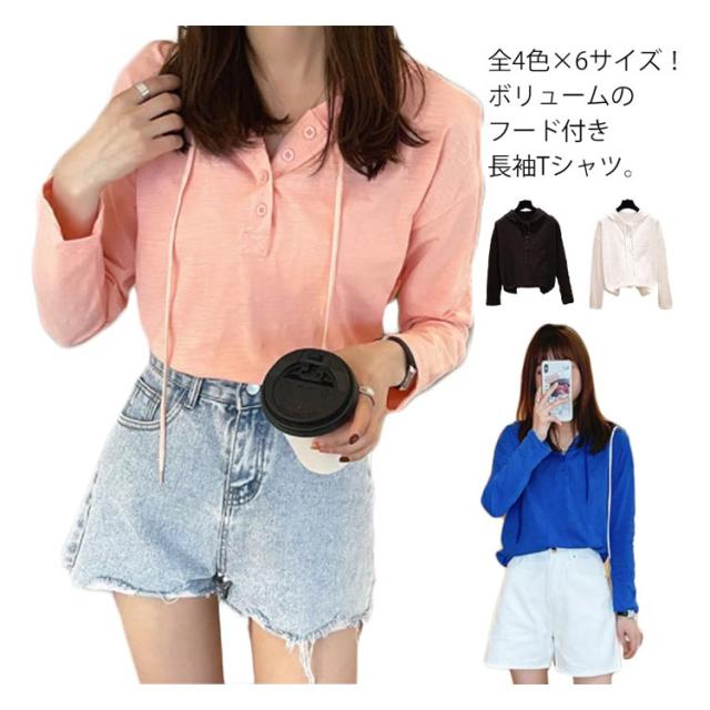 フード付きtシャツ 長袖tシャツ レディース フード付き tシャツ トップス プルオーバー カットソー 綿 ホワイト ブラック ピンク ブルー 春服 秋服 シンプル おしゃれ S−3XL カジュアル 送料無料