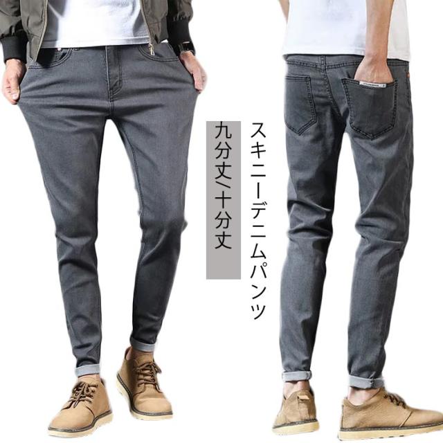 送料無料 スキニー デニム メンズ ストレッチ 九分丈 スキニーデニムパンツ ジーンズ ストレッチ スキニーパンツ スキニーデニム ストレッチデニム グレー 春 夏 秋 服