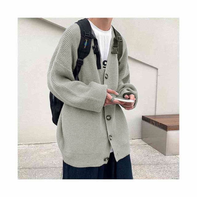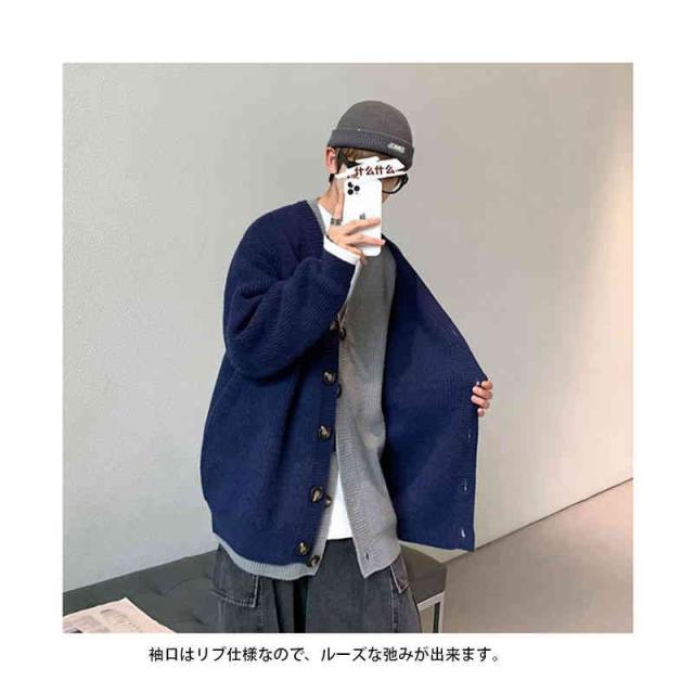 カーディガン メンズ ニットカーデ 春ニット Vネック 長袖 ロング丈 厚手 あぜ編み ゆったり バルーンシルエット 前開き ボタン ビッグシルエット レイヤード 春服 春 春夏 きれいめ 大きめ カジュアル 無地