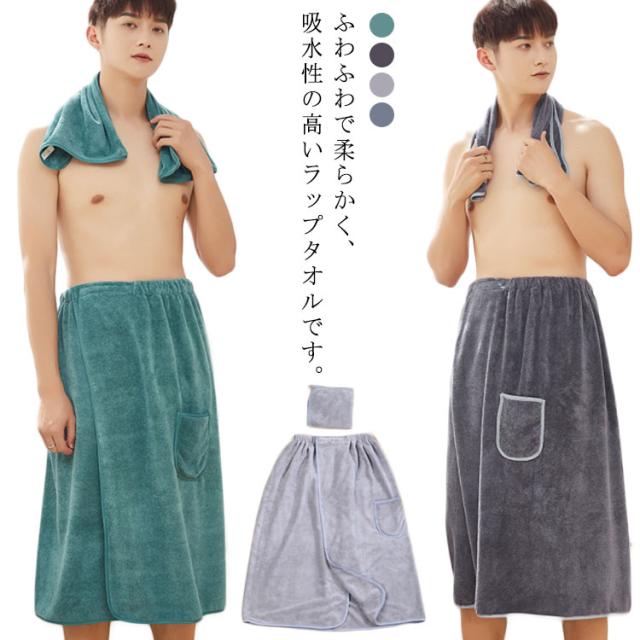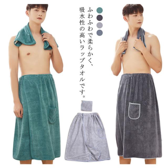 ラップタオル バスタオル 巻きタオル メンズ 大人用 ルームウエア パジャマ 2点セット フェイタオル 吸水タオル 着替えタオル バスローブ マイクロファイバー ふわふわ 吸水速乾 お風呂 ビーチタオル プール 海水浴 ジム スイミング 送料無料