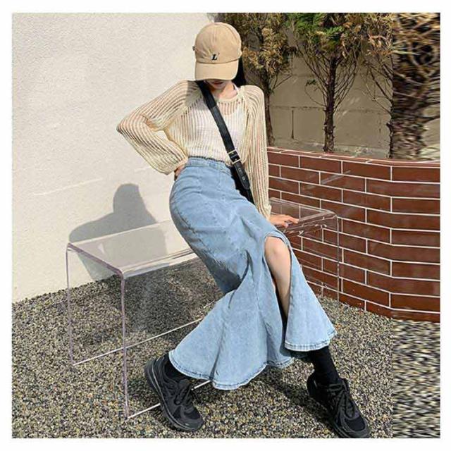 | 【カジュアル×エレガントなデニムスカート】流れるようなラインが印象的なマーメイドスカート。美しくエレガントなシルエットをデニム生地でカジュアルダウンし、デイリーに使える一着に。きれいめトップスからラフなストリートスタイルまで、合わせるアイテムを選ばないのも嬉しいポイントです。 【360°スタイルアップできる美シルエットデザイン】腰回りはほどよくフィットしつつ、裾に向けてゆるやかに広がるマーメイドシルエットでスタイルアップ効果も抜群!ヒップラインは体のラインに沿って美しく、裾のフレアとのコントラストで足首まわりの華奢見せも叶います◎ 【こだわりのディテールでほどよい存在感をプラス】生地切り替え部分のデザインにもこだわりが光るスカート。360°くるりと走るステッチラインが単調な印象にさせず、コーディネートにアクセントをプラスしてくれます。さらに、ヒップポケットなどデニムアイテムらしさもしっかり備え、カジュアルでこなれた印象に◎ | |