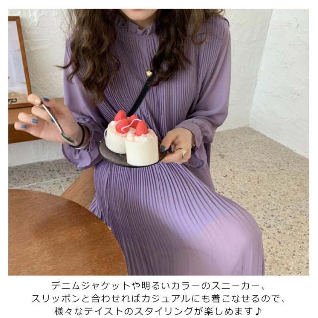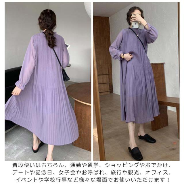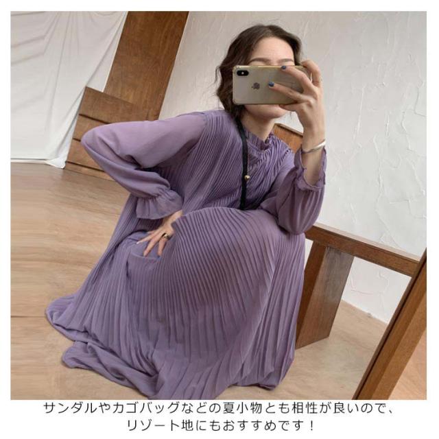 ワンピース レディース 韓国 ドレス 長袖 ロング丈 春 着痩せ 無地 シフォン フリル シースルー かわいい レディースワンピース おしゃれ リゾート 無地ワンピース 20代 30代 40代 シフォン風 フリル