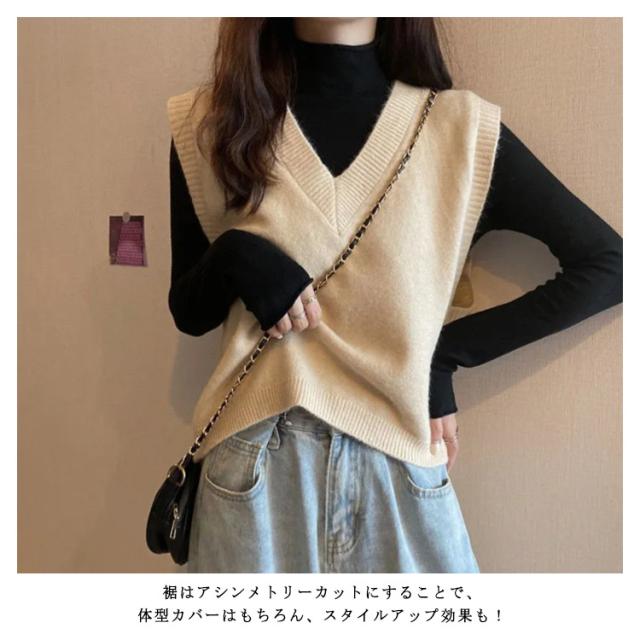 送料無料 ベスト ニットベスト レディース 韓国 ゆったり ニット ベスト レディース ファッション ニットベスト 春 秋冬 ニット トップス ベスト vネック おしゃれ ノースリーブ シンプル 無地 カジュアル レイヤード 重ね着 ベスト 秋 冬 春 ブラック ベージュ