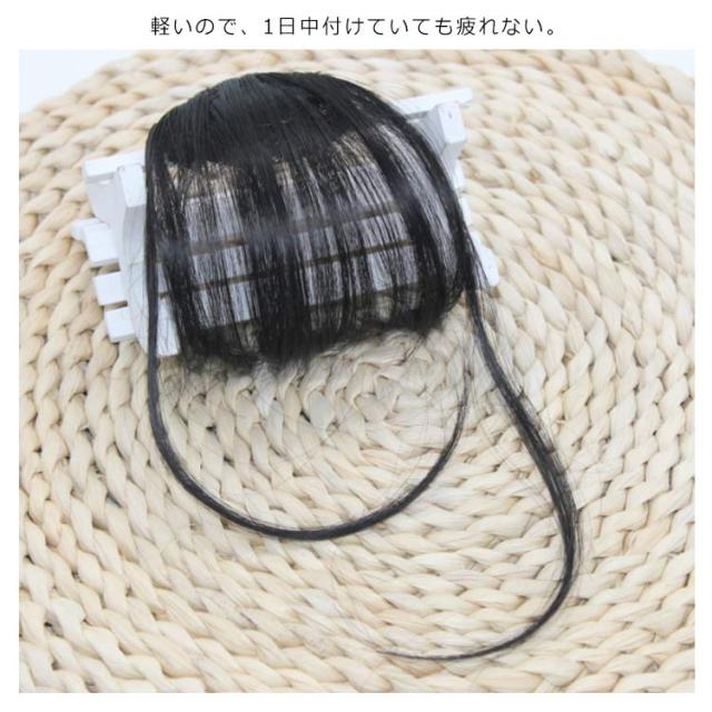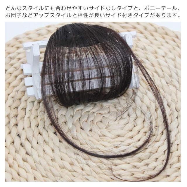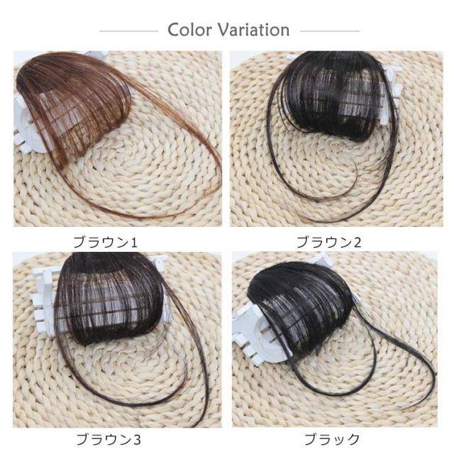 | 特性:ウイッグとは思えない馴染みの良さ。質感にこだわった人毛を100%使用しているので、テカリもなく自然に見えます。根元がふわふわしていて、超自然な前髪ウィッグ! ポイント:小顔効果もバッチリ。ふんわり軽い・透け感とふんわり空気感、安い値段で非常に美しい体験をもたらす。自身の好みによって染色できる。どんなスタイルにも合わせやすいサイドなしタイプと、ポニーテール、お団子などアップスタイルと相性が良いサイド付きタイプがあります。是非試してくださいね! クリップ:クリップ式デザインでカッチンと簡単に付けてらくらく変身できます。クリップで地毛にしっかり固定するだけ。ウイッグ初心者でも簡単にイメチェン出来るんです。軽いので、1日中付けていても疲れない。 | |
