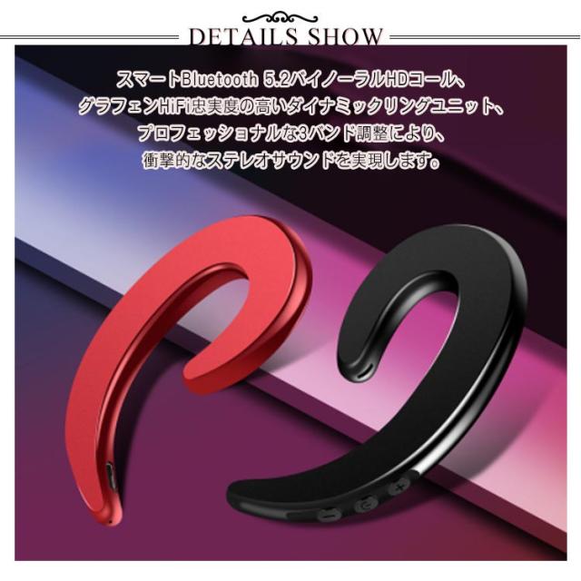| 【ステレオ通話をサポート】スマートBluetooth 5.2バイノーラルHDコール、グラフェンHiFi忠実度の高いダイナミックリングユニット、プロフェッショナルな3バンド調整により、衝撃的なステレオサウンドを実現します。 【バイノーラル分離設計】片耳接続で2台のデバイスを接続できます。バイノーラル接続HiFiステレオサウンドエフェクト。 【快適で安全】外耳道をレシーバーに接続することなく音楽を聴いたり電話に出たりすることができ、耳は周囲の音を非常に安全に聞こえます。 【骨伝導技術】骨を振動させることで音を聴かせる「骨伝導ヘッドホン」。耳を塞がないため、オープンイヤーのデザインで、開放感が満喫できます、長時間使っても、耳には不快感が当たらない。 | |