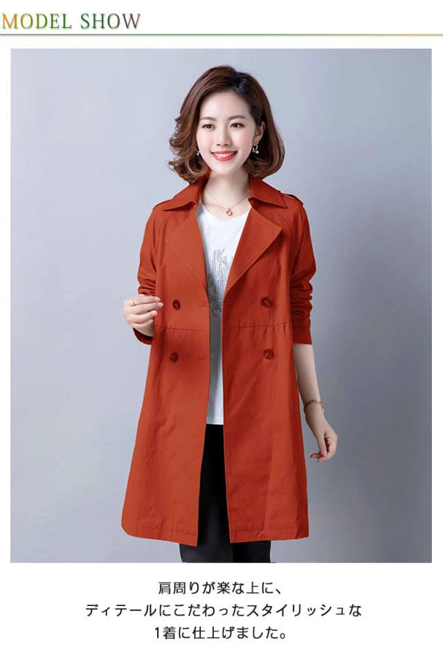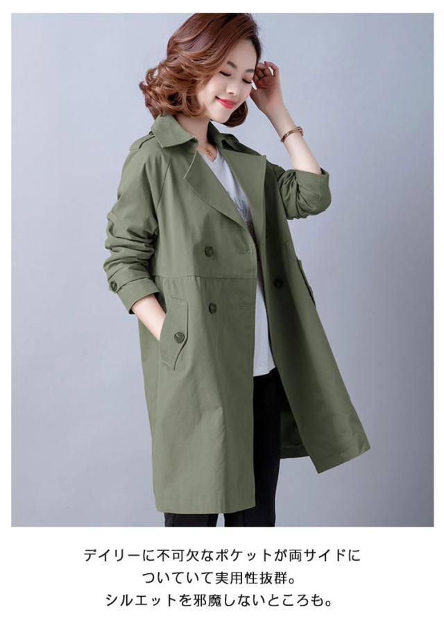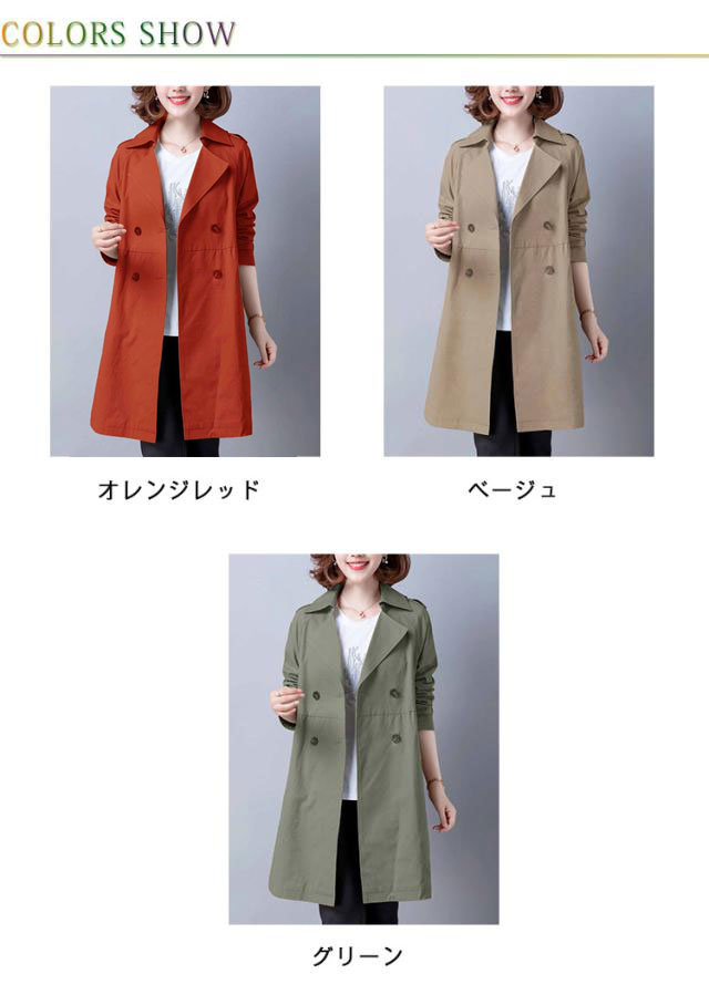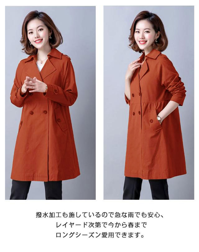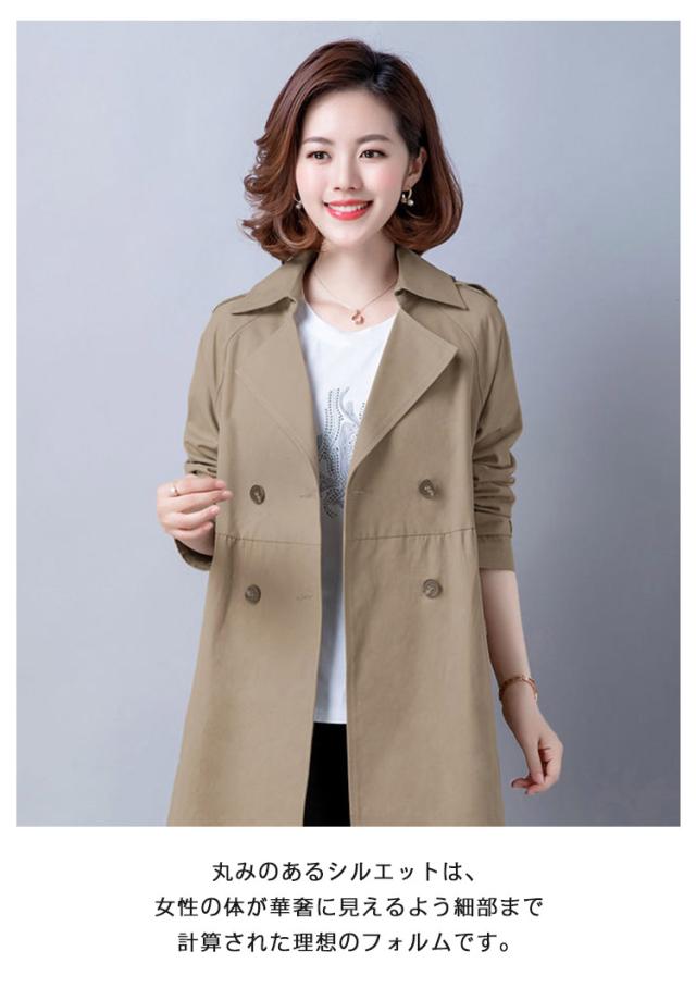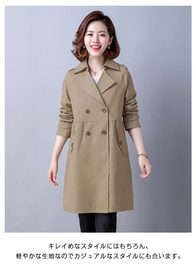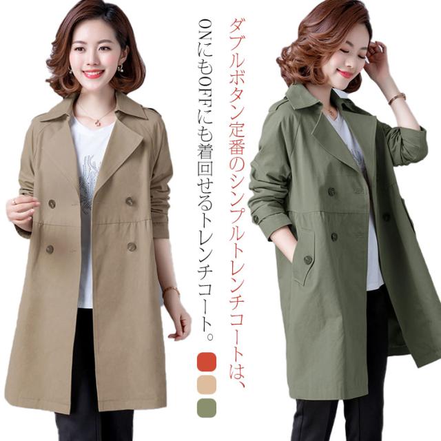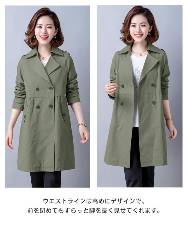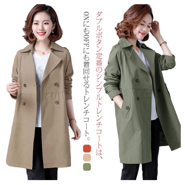 トレンチコート レディース コート スプリングコート 春 長袖 アウター ジャケット トレンチ コート 春コート テーラード ダブルボタン ウェスト 切り替え ミドル丈 無地 女子 30代 40代 50代 通勤 きれいめ リクルート ビジネス