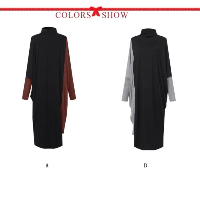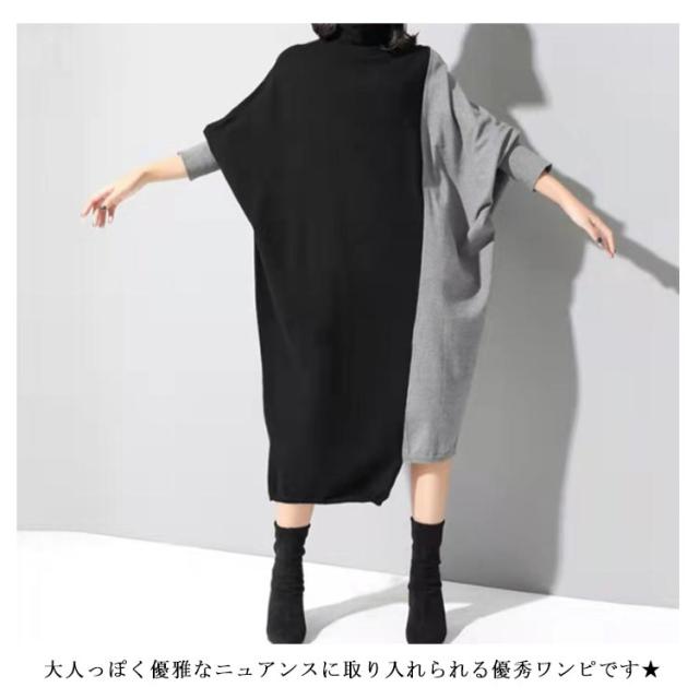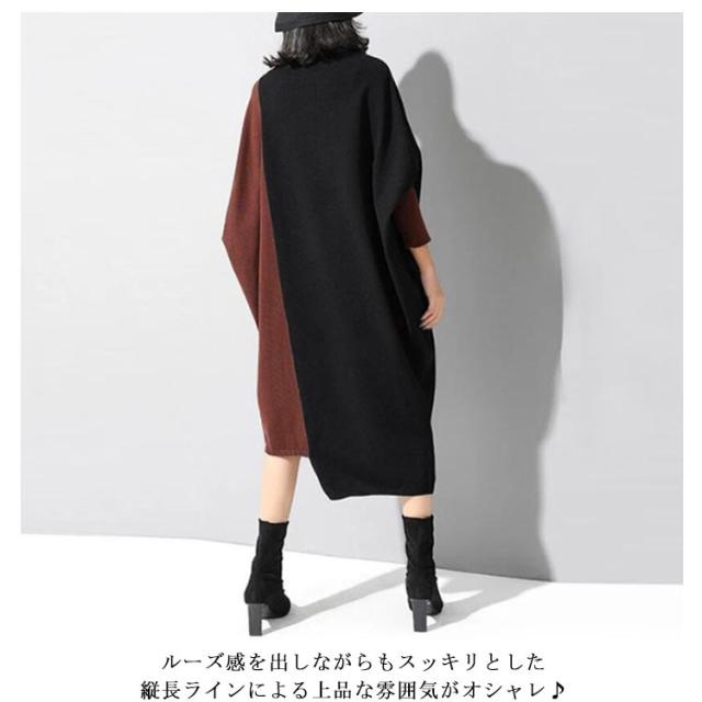 コクーンニットワンピ ニットワンピース 長袖 ロングワンピース マキシワンピース 送料無料 ニット オーバーサイズ ビッグサイズ 切り替え 配色 バイカラー 配色切替 不規則 ゆるカジ マキシワンピ