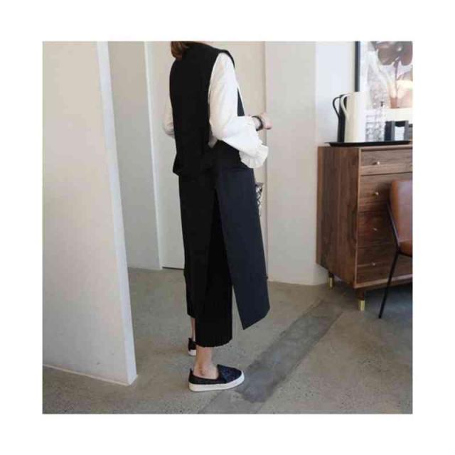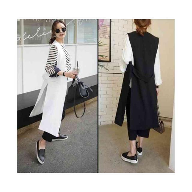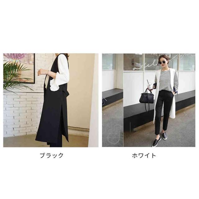 ジレ レディース ロングジレ ロングベスト トレンチベスト ノースリーブ ロング丈 サイドスリット スーツベスト ノーカラー レイヤード ポケット付き ウェストベルト 薄手 アウター おしゃれ 体型カバー