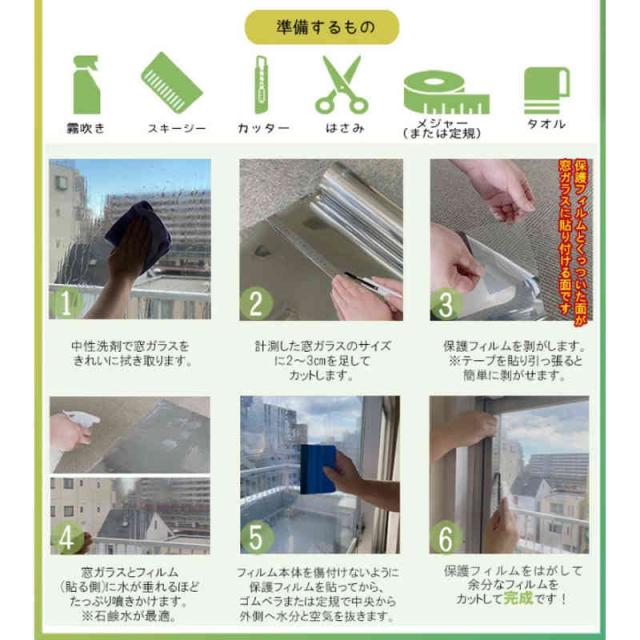 | 貼付痕跡なし この製品は、粘着剤なしの静電吸着タイプです。剥がしても、窓ガラスに接着剤の跡が残りません。 貼り付け簡単 水だけで簡単に貼り付けられて、何度も再利用可能です。※使用環境によってフィルムが劣化することがありますので、予めご了承ください。 目隠し効果 充分な天然の日光を室内に取り込めて明るさを維持しながら、外からの視線を遮ります。大切なプライバシーをきちんと守ります。 紫外線対策 室内に入る有害な紫外線を大幅カットして、眩しい直射日光を和らげて肌を刺すようなジリジリ感などの不快を抜き取り、紫外線による家具の日焼け、変色、劣化も軽減できます。 飛散防止・キズ防止 静電気吸着効果が粘着力を引き出し、台風や地震時にガラスが割れても破片は飛び散りません。また、ガラス表面の擦り傷も防ぎます。 冷暖房効率アップ 夏には赤外線(太陽熱)を反射吸収し、室内に入る熱気を抑え、冷房で涼しくなった室温を保つことができます。冬には、暖房の暖気を逃さない効果があり、冷暖房の省エネにもなります。 | |
