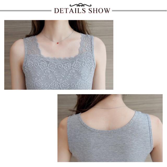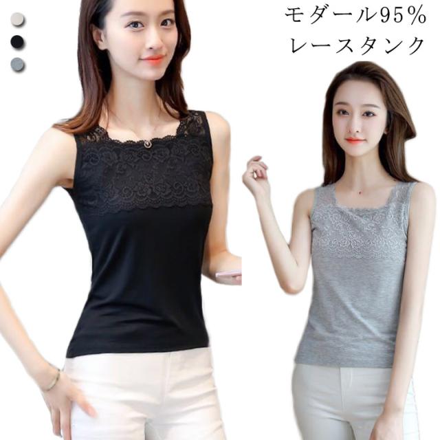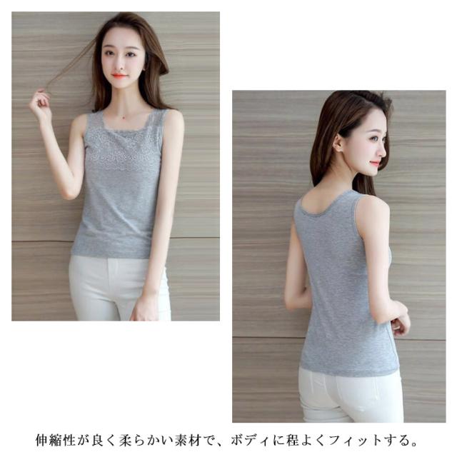 トップス タンクトップ インナー レースインナー コットン 綿 吸水速乾 レース スクエアネック レースインナー 花柄 レディース 可愛い 春 夏 胸レースタンクトップ 送料無料