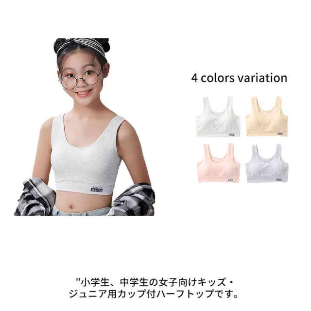 送料無料 キッズブラジャー ジュニアブラ 単品 ハーフトップブラジャー ノンワイヤー スポーツブラジャー 子供用ブラジャー 小学生 中学生 インナー 下着 女の子 ジュニア シンプル 無地 単色 ソリッドカラー ハート柄 ドット柄 水玉模様 可愛い か