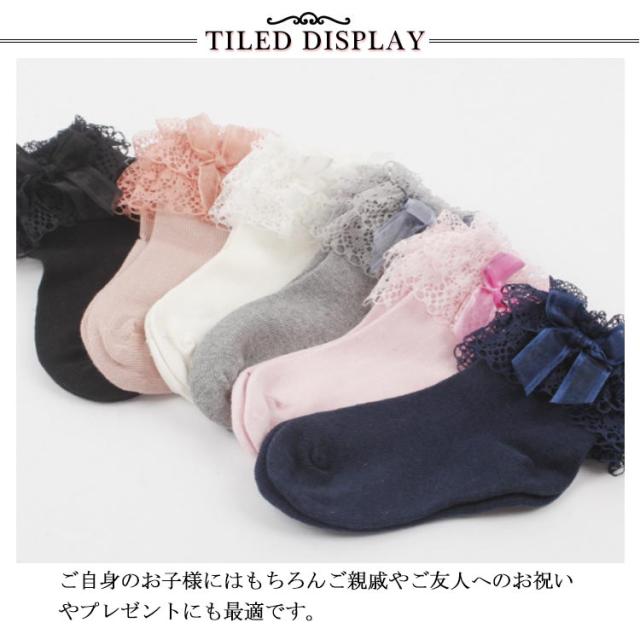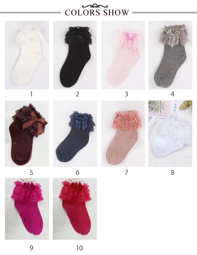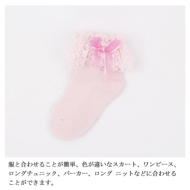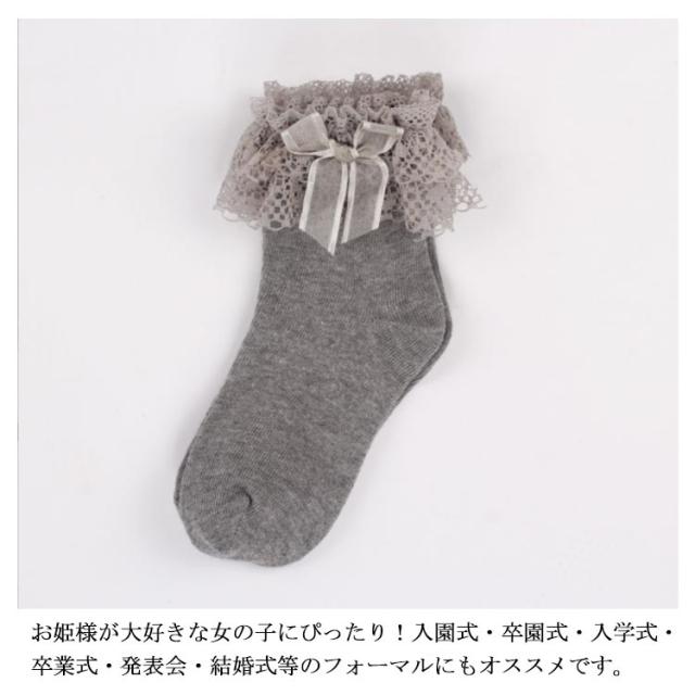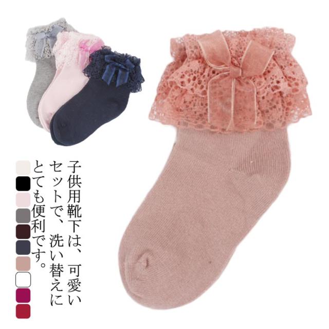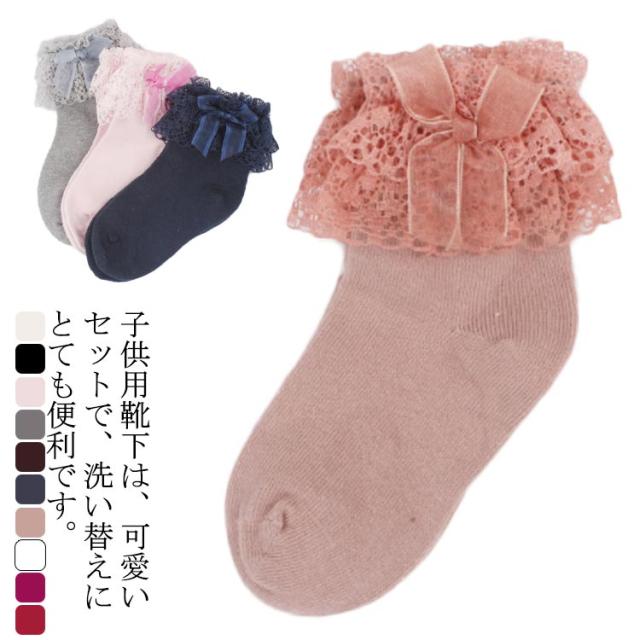 全10色 靴下 キッズ レース レースソックス キッズソック フォーマルソックス お姫様 リボン 蝶結び ソックス レースフリル付 クルー丈 子供 幼児 フォーマル 結婚式 発表会 七五三 パーティー ピアノ かわいい
