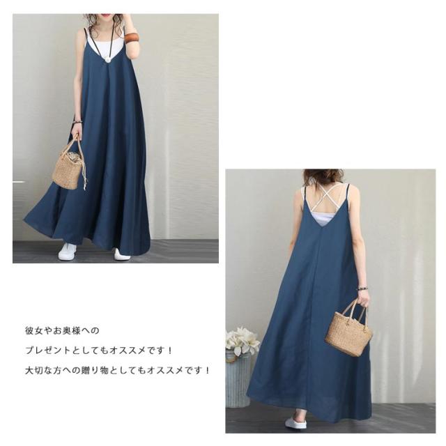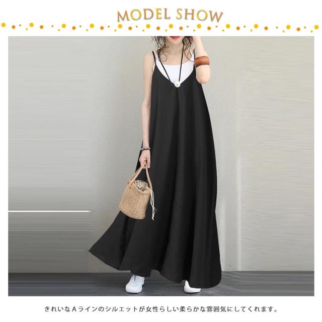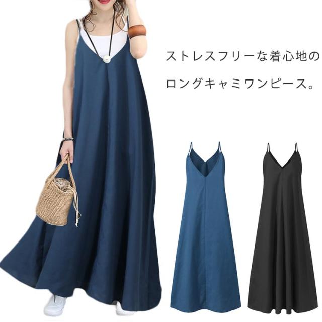 ワンピース キャミソール キャミワンピース ロングワンピース キャミワンピ マキシ丈ワンピース ノースリーブ レディース 体型カバー 無地 カジュアル シンプル 黒 ブラック ブルー