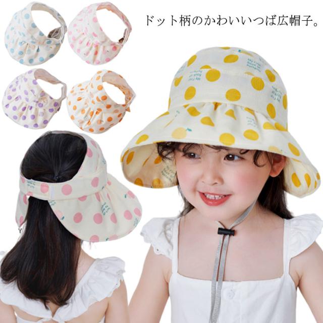 UVカット帽子 折りたたみ 子供 帽子 キッズ 帽子 日よけ 小学生 幼稚園 保育園 アウトドア サマーハット つば広帽子 つば広ハット あご紐付き 子供 折り畳み 紫外線対策 UV対策 女の子 春夏秋 送料無料 オシャレ ドット 点々 かわいい 49cm〜51cm