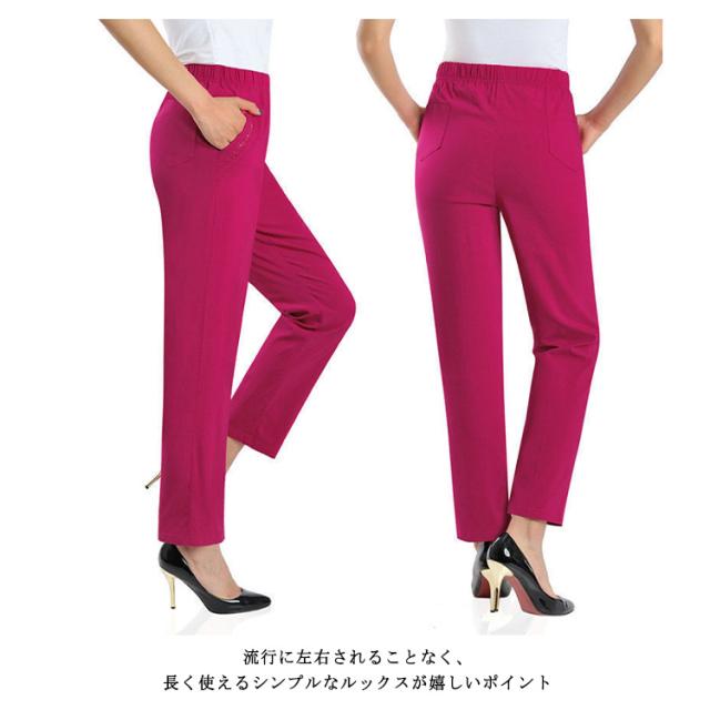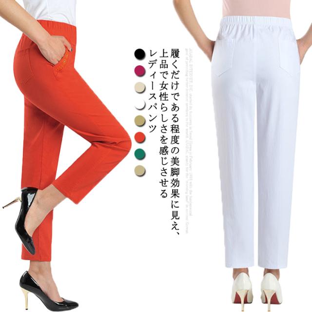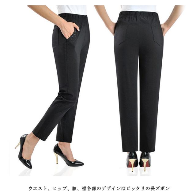 ロングパンツ レディース テーパードパンツ ストレッチパンツ イージーパンツ ハイウエスト ウエストゴム リラックス 部屋着 ルームウエア オフィス 通勤 美脚 着痩せ エレガント 大きいサイズ 母