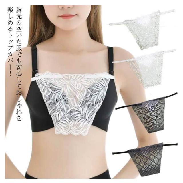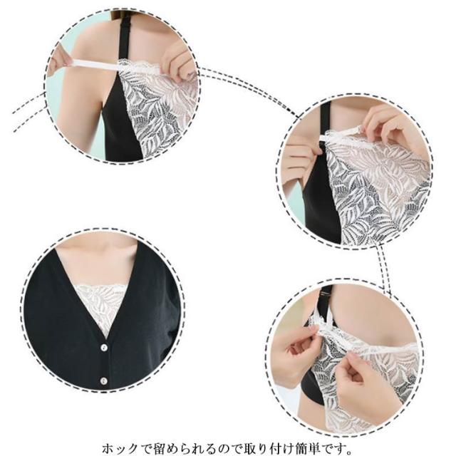 【送料無料】胸元 カバー ブラカバー 谷間隠し インナー チラ見え防止 下着 レディース 総レース 胸元隠し キャミ風 トップカバー セクシー かわいい レース 花 リーフ ブラジャー 谷間カバー 胸元ラインカバー 女性用 ひんやり ブラック ホワイト