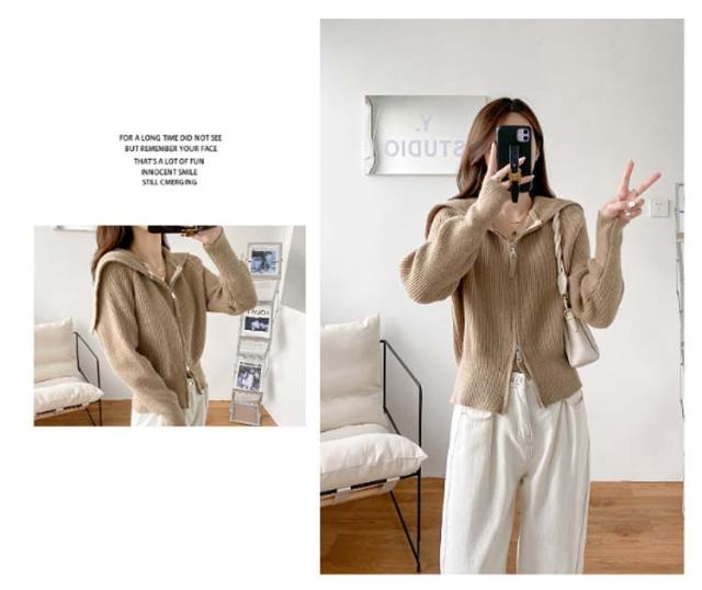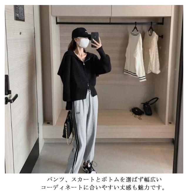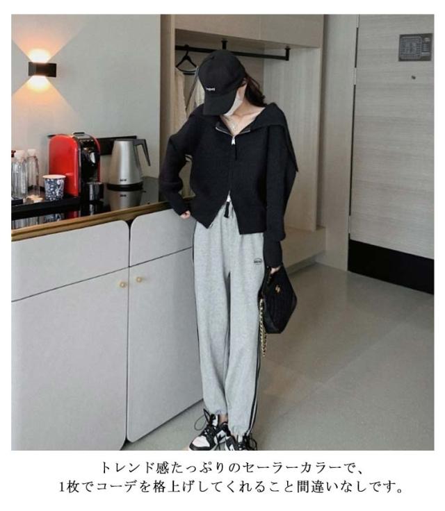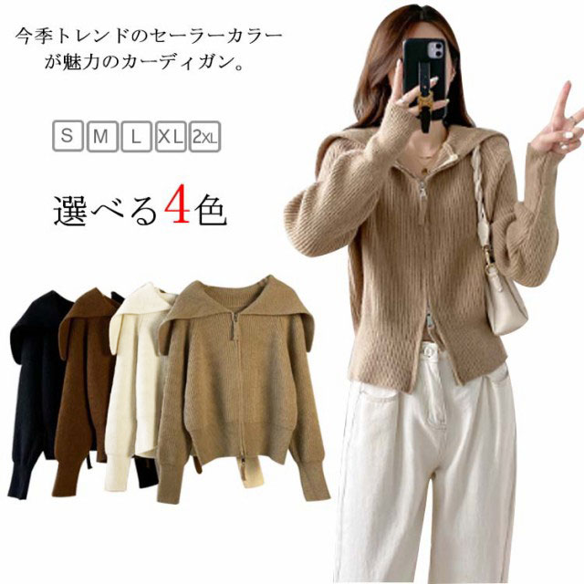カーディガン レディース セーラーカラー ニットカーディガン セーラー襟 ニットセーター 長袖 ニット トップス ショート丈 羽織り 前開き ファスナー ドロップショルダー ゆったり 無地 シンプル かわいい 大人 カジュアル トレンド 通勤 オフィス きれいめ 春秋