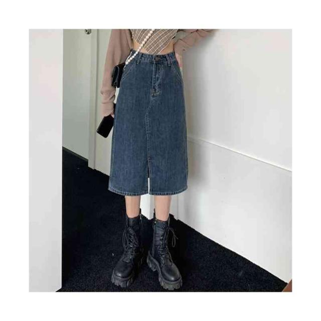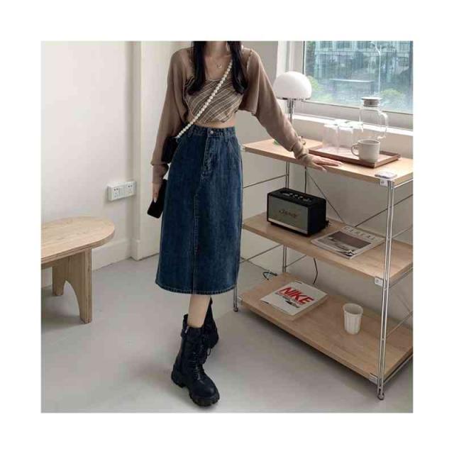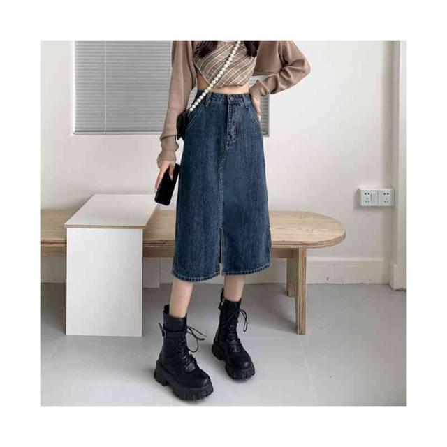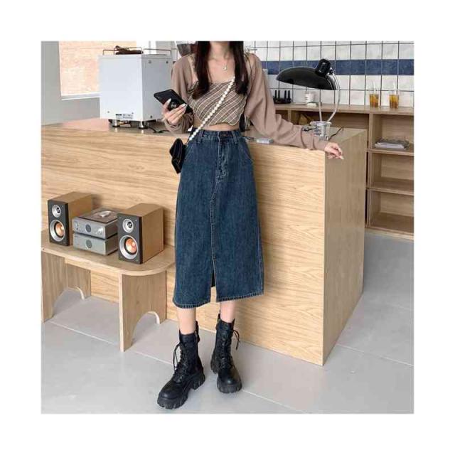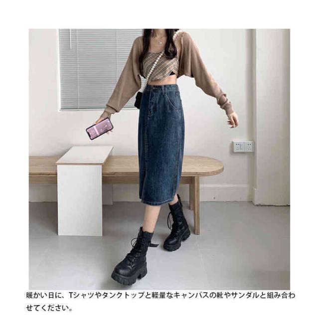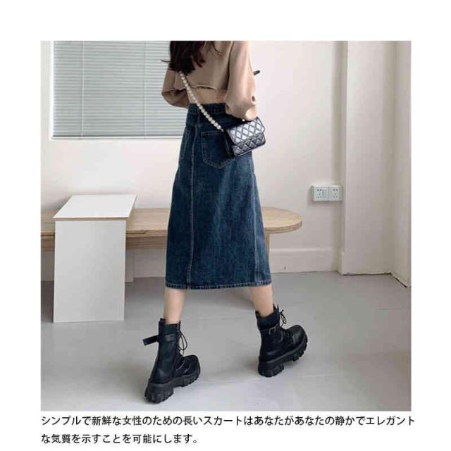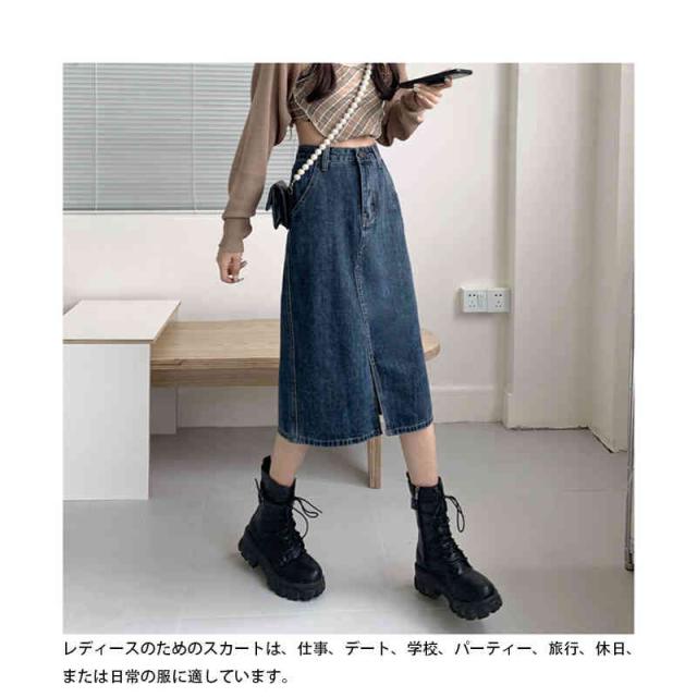 デニム スカート スリット 前開き ボタン ハイウェスト ロングスカート 春夏 ジーンズ セクシー ストレート レディース ファッション 無地 シンプル Aライン 着痩せ きれいめ