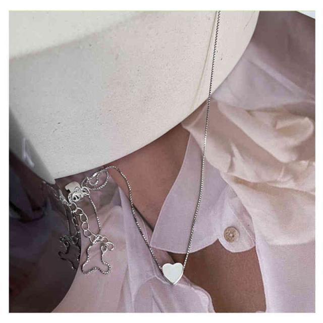 シルバーネックレス ハート スターリングシルバー レディース 鎖骨チェーン ハートペンダント ライトラグジュアリー シルバージュエリー アクセサリー
