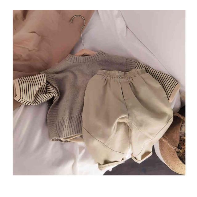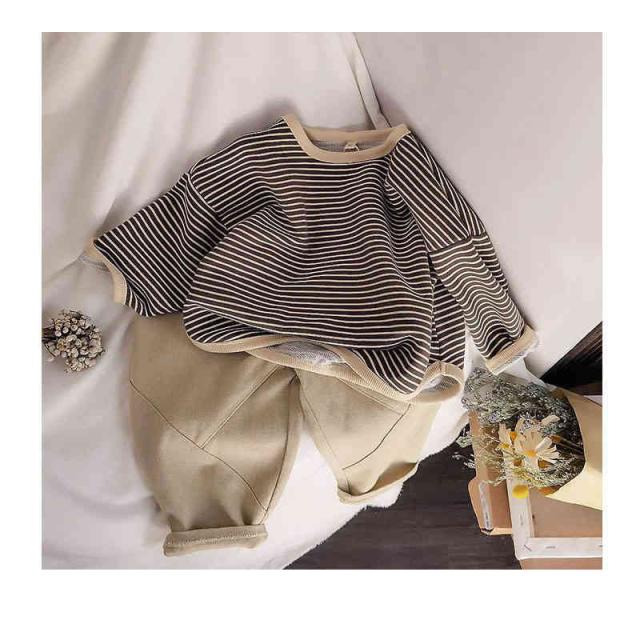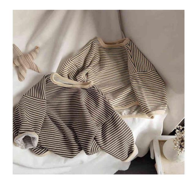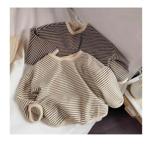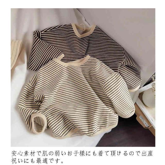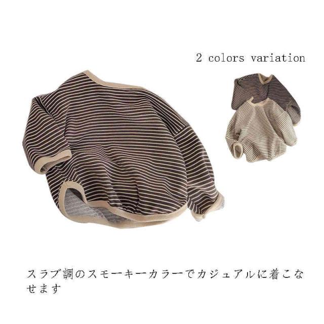 送料無料 子供服 ストライプ トップス 伸縮性抜群スパンフライス無地長袖Tシャツ(80cm 90cm 100cm 110cm 120cm)保育園 長袖T シャツ 子供服 ベビー服