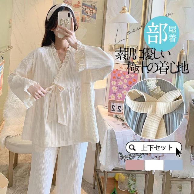 【水曜日まで!10%クーポン配布中】 パジャマ レディース ルームウエア 夏 部屋着 長袖 セットアップ 夏パジャマ レース 肌触り コンフォート カジュアル ナイトウ