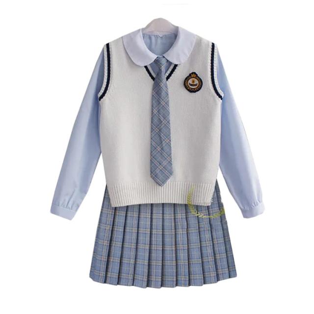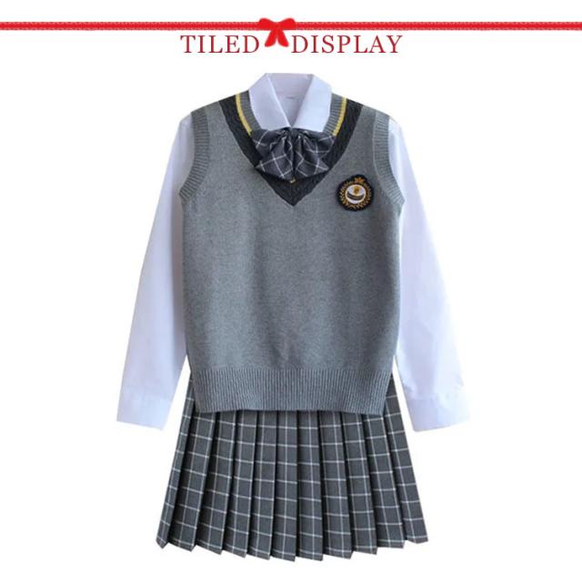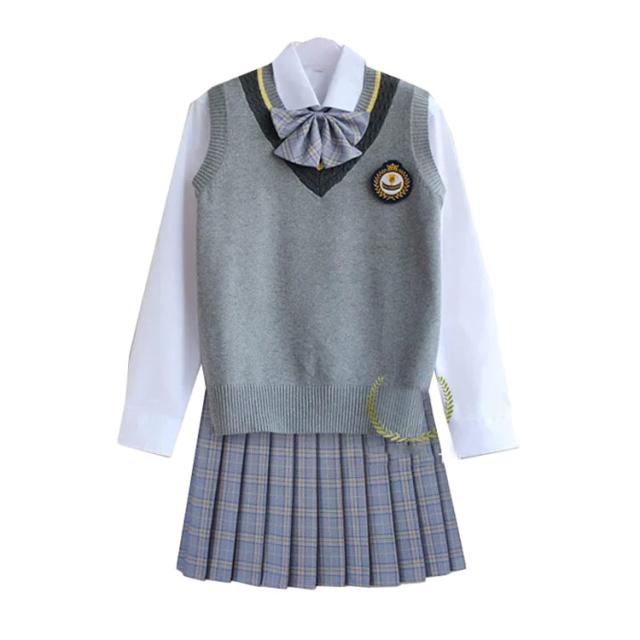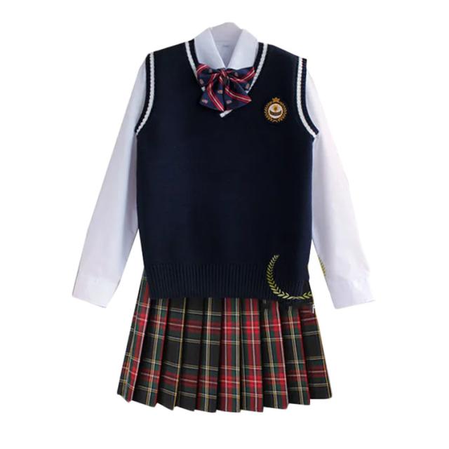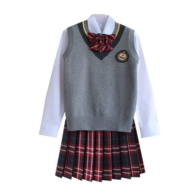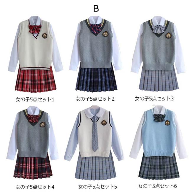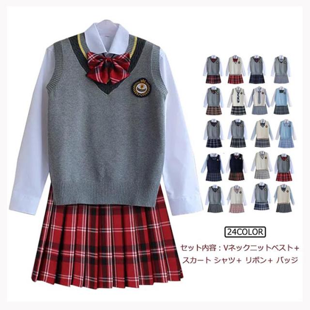 全24色 制服5点セット スカートスーツ 女子高生制服 フォーマルスーツ セットアップ Vネックニットベスト 卒業式 入学式 スーツ 女子制服 コスプレ コスチューム スクール ベスト スカート シャツ チェック柄 格子 セットアップ