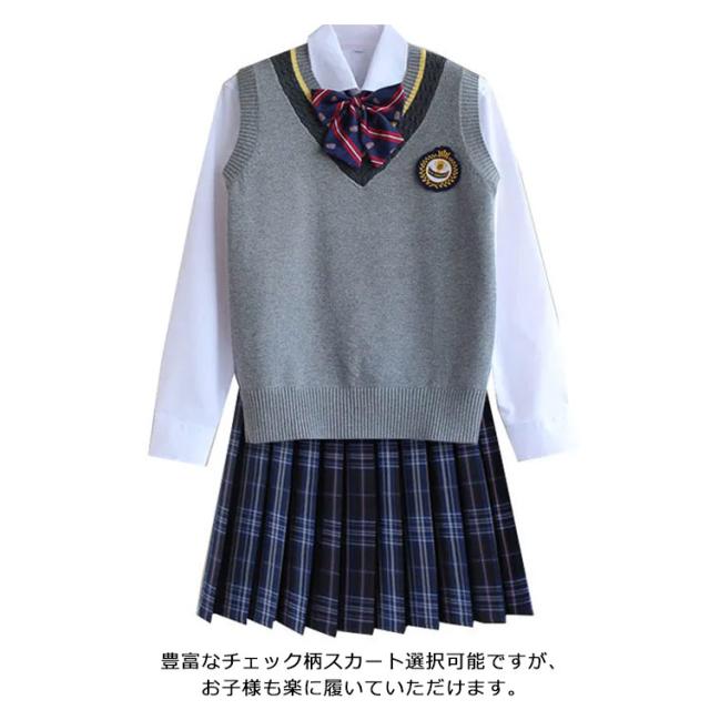 | セット内容:Vネックニットベスト+スカート シャツ+ リボン+ バッジ 豊富なチェック柄スカート選択可能ですが、お子様も楽に履いていただけます。 可愛らしさを演出するリボンは少し大きめで、留め具は強めに引っ張ると外れる安全仕様。 リボンとチェックスカートがとってもキュート。お子様の好みに合わせてお選びください | |