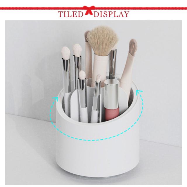 | 360°回転できるメイクブラシケース 仕切りで7つに分かれ筆やメイク道具を立てて収納できるので探すことなく素早く使う事が出来ます。 お化粧の時間もとても便利♪ | |