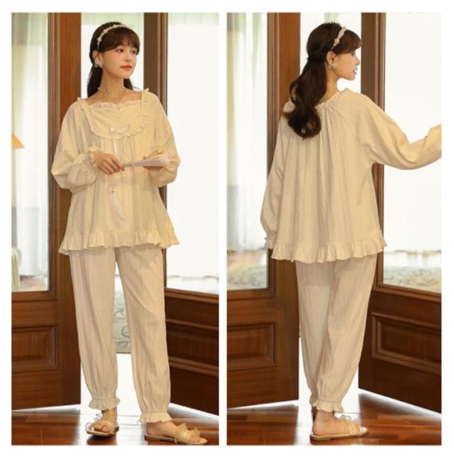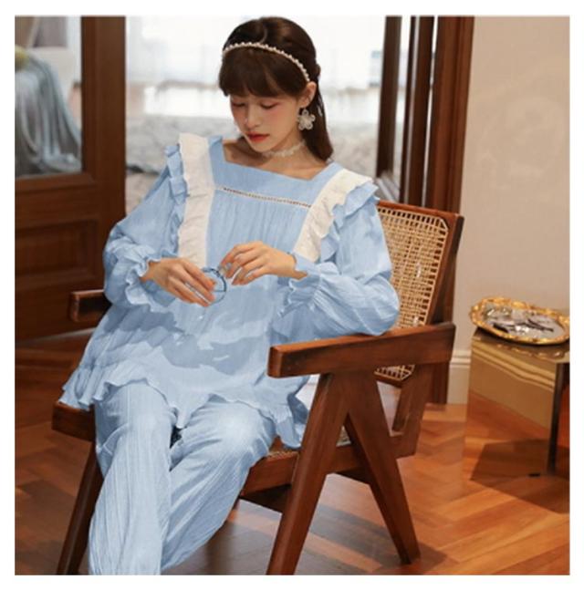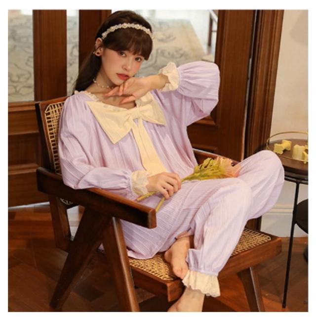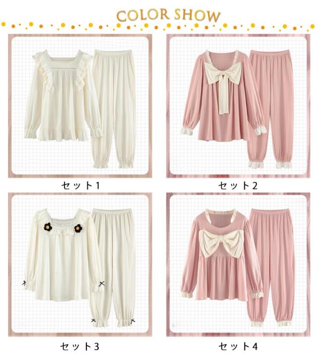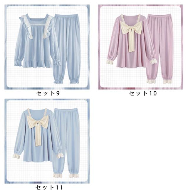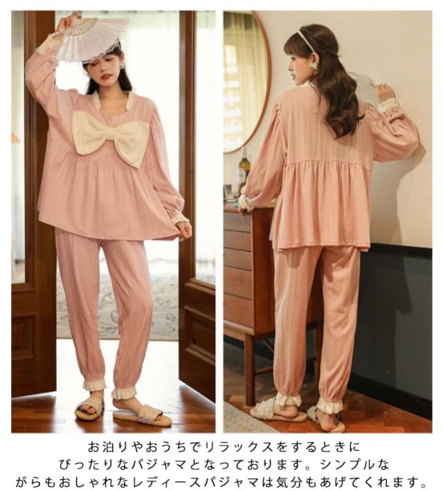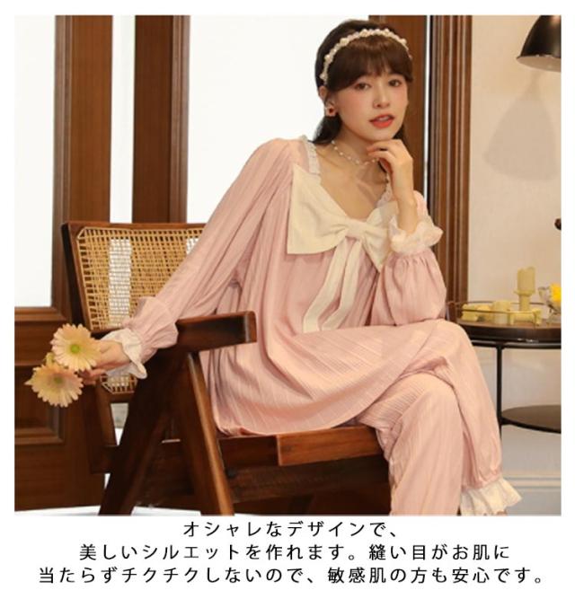 パジャマ 上下セット レディース 長袖 ルームウェア 2点セット トップス パンツ ナイトウェア 部屋着 春 夏 秋 高校生 中学生 姫系 リボン お泊り 旅行 着痩せ 無地 かわいい 大きいサイズ