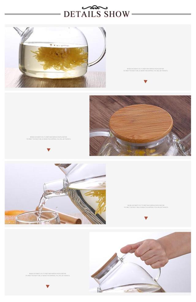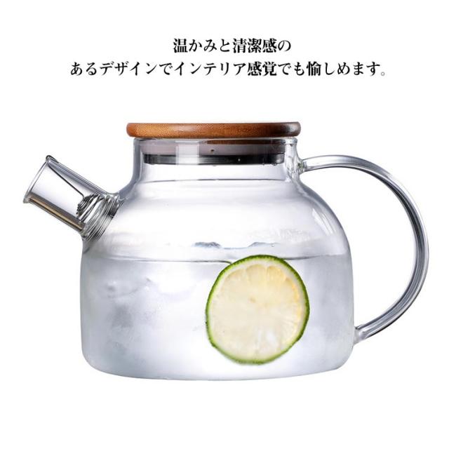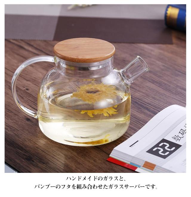 ガラスティーポット ストレーナー付き 竹製の蓋 フタ付き 紅茶ポット おしゃれ かわいい 紅茶用 緑茶用 プレゼント ギフト 誕生日 母の日 敬老の日 お手入れ簡単 急須 耐熱ガラス製 食洗機対応 茶こし付