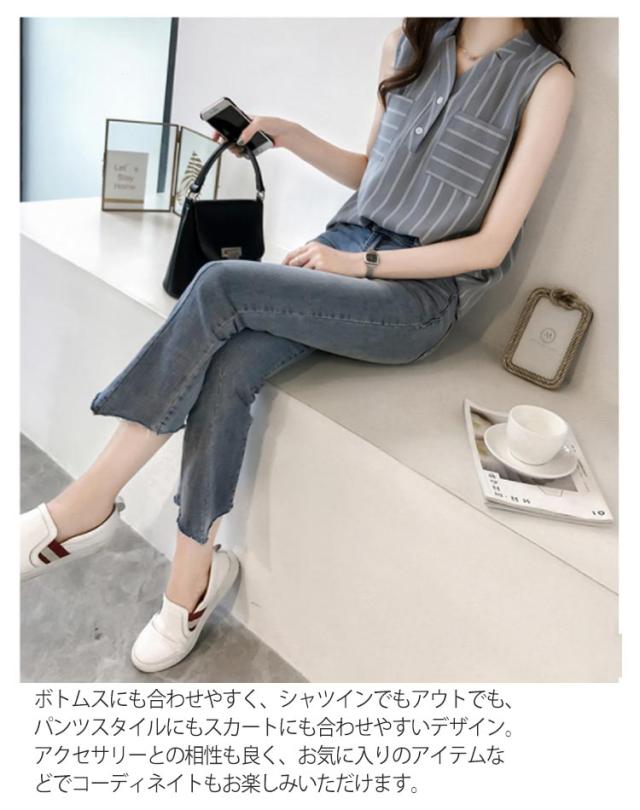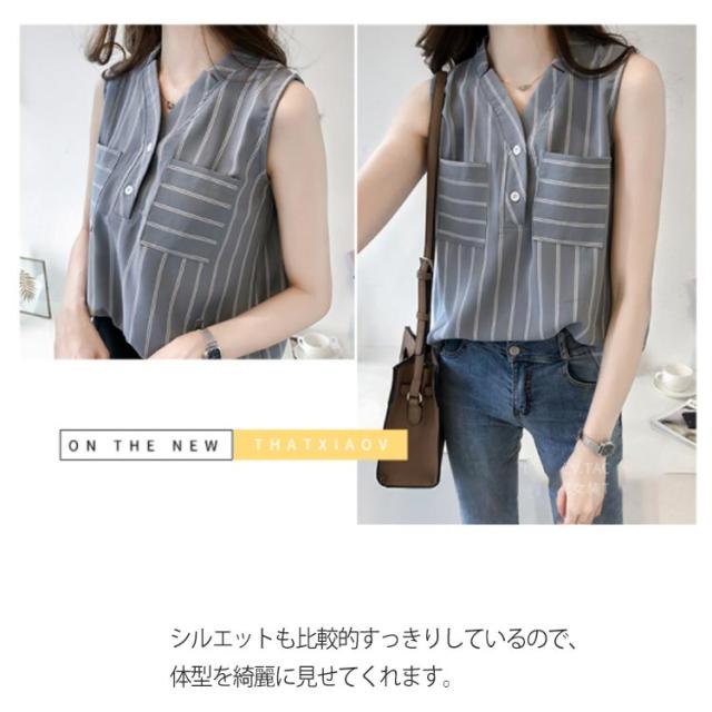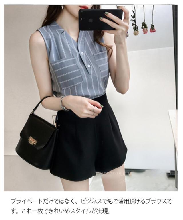 送料無料 トップス ブラウス レディース シャツ ノースリーブ Vネック ストライプ カットソー シャツ デコルテ 着回し 日常 ゆったり フェミニン カジュアル 通勤 日常 二次会 きれいめ 新作 シアートップス