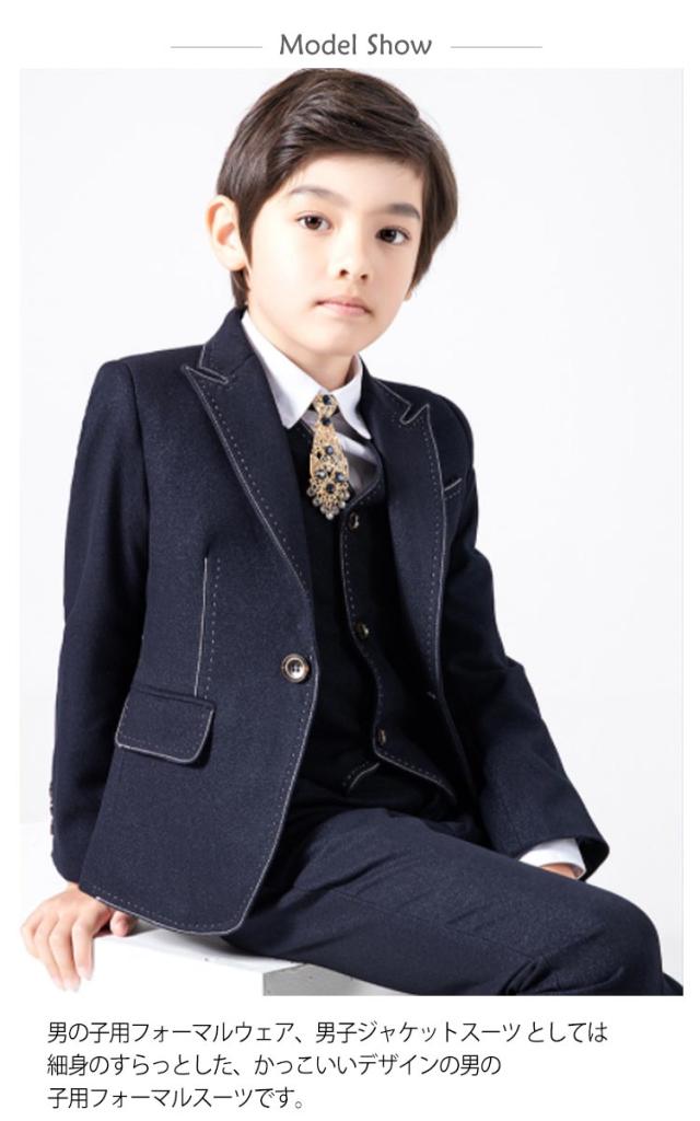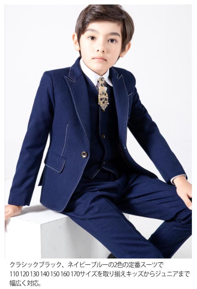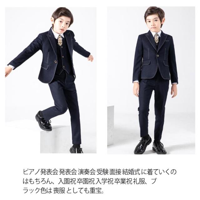 | 【セット内容】 ジャケット、ズボン、ワイシャツ、蝶ネクタイ、ネクタイ、充実の5点セットの小学生、幼稚園 年長向け子供フォーマルスーツ。しっかりした生地ですらっとした細身シルエットのフォーマルスーツ。通年に対応しています。 男の子用フォーマルウェア、男子ジャケットスーツ としては 細身のすらっとした、かっこいいデザインの男の子用フォーマルスーツです。 ピアノ発表会 発表会 演奏会 受験 面接 結婚式 に着ていくのはもちろん、入園祝 卒園祝 入学祝 卒業祝 礼服、ブラック色は 喪服 としても重宝。 クラシックブラック、ネイビーブルーの2色の定番スーツで110 120 130 140 150 160 170サイズを取り揃えキッズからジュニアまで幅広く対応。 蝶ネクタイがワンポイントとなって、凛としたかわいさがある かっこいい 男の子スーツ 子供用タキシード です。 | |