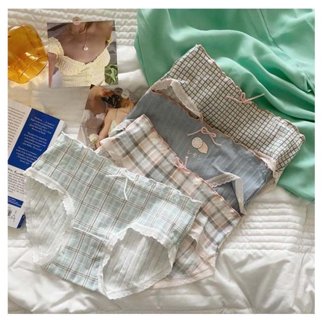 送料無料 2点セット レディース ショーツ レディースショーツ 2枚 福袋 綿混 デイリー 下着 インナー レディース 女性 ショーツ パンツ パンティー パンティ レース 可愛い かわいい スダンダード ハッピーバッグ 単品 ボーダー チェック