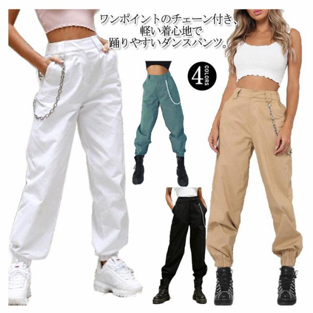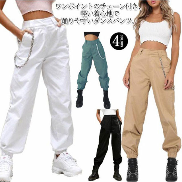 ジョガーパンツ カーゴパンツ 送料無料 ミリタリーパンツ ダンスパンツ レディース ヒップホップ 長ズボン チノパン カジュアルパンツ ダンス ストリート系 おしゃれ チーン付き