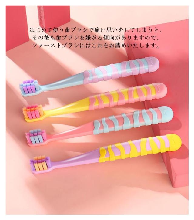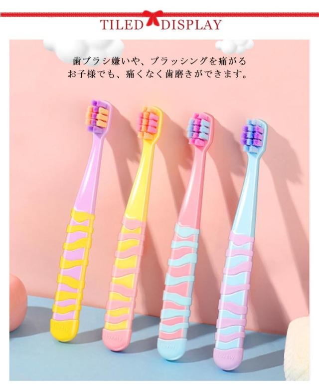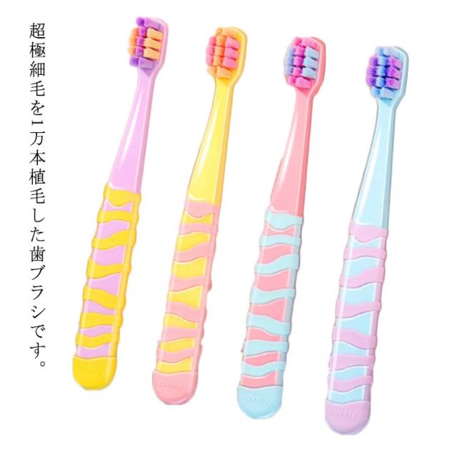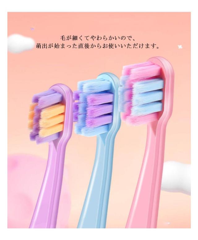 | 超極細毛を1万本植毛した歯ブラシです。 歯ブラシ嫌いや、ブラッシングを痛がるお子様でも、痛くなく歯磨きができます。 毛が細くてやわらかいので、萌出が始まった直後からお使いいただけます。 はじめて使う歯ブラシで痛い思いをしてしまうと、その後も歯ブラシを嫌がる傾向がありますので、ファーストブラシにはこれをお薦めいたします。 柔らかく刺激が少ない毛を使用しているので、触覚過敏、感覚過敏のお子様にもお薦めいたします。 | |