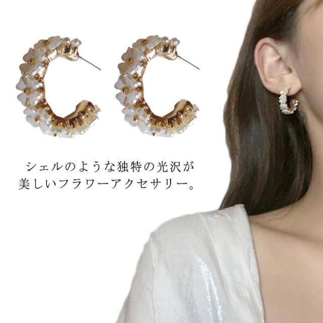 送料無料 トリプルフラワーピアス イヤリング お花 ホワイトフラワー 925シルバー ポスト シェル風 上品 レディース 大人っぽい シンプル かわいい