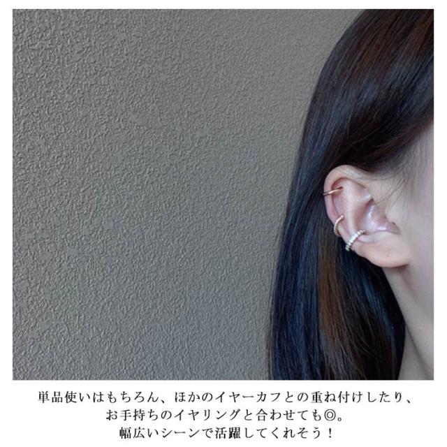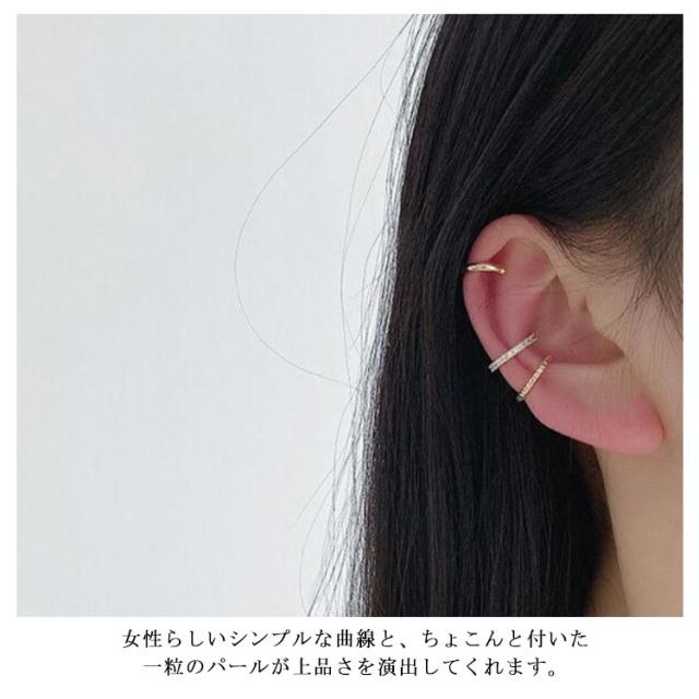 | 軟骨に引っ掛けるように着けるだけで気軽に耳元のお洒落を楽しむことができるイヤーカフ。 女性らしいシンプルな曲線と、ちょこんと付いた一粒のパールが上品さを演出してくれます。 単品使いはもちろん、ほかのイヤーカフとの重ね付けしたり、お手持ちのイヤリングと合わせても◎。幅広いシーンで活躍してくれそう! 【ご注意ください】着用しずらい場合は、少し広げて着用し指で押して閉じると安定します。無理に広げると破損の原因となりますのでご注意ください。 | |