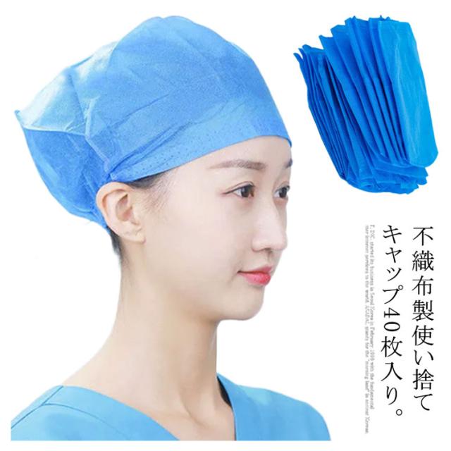 使い捨てキャップ 40枚入り 不織布キャップ 不織布帽子 使い捨て帽子 ディスポキャップ ヘアキャップ 毛髪落下防止 飛沫 粉塵 予防 防塵 防護キャップ ネットキャップ 衛生用品 通気性 男女兼用 作業用 業務用 介護 美容院 食品加工 工場見学 学校 飲食店 料理 研究 送料無料