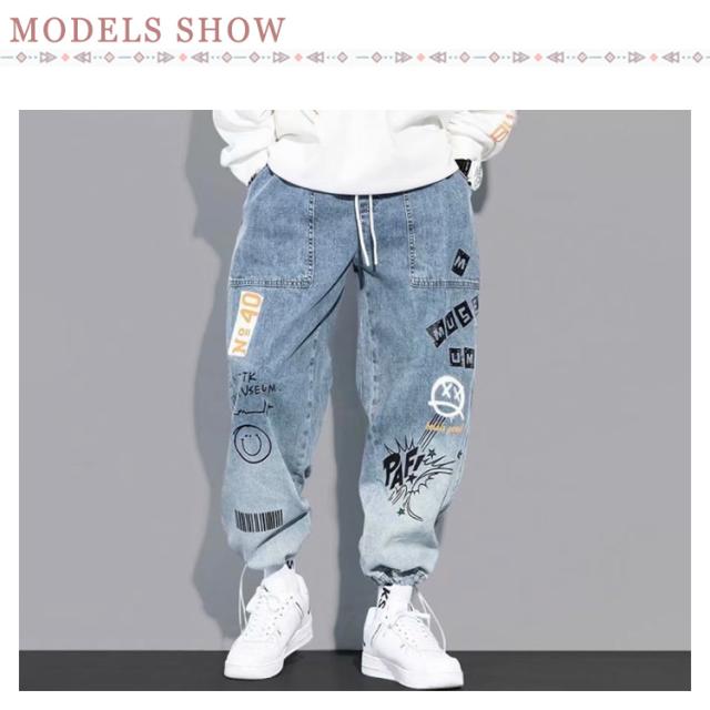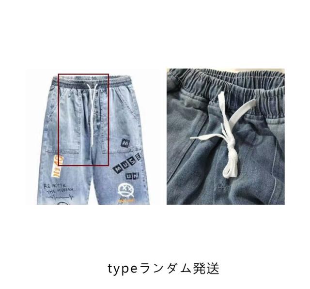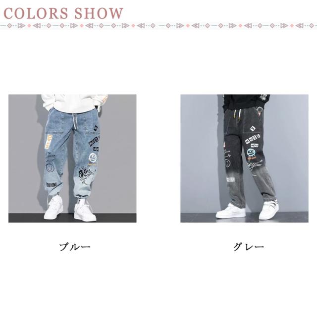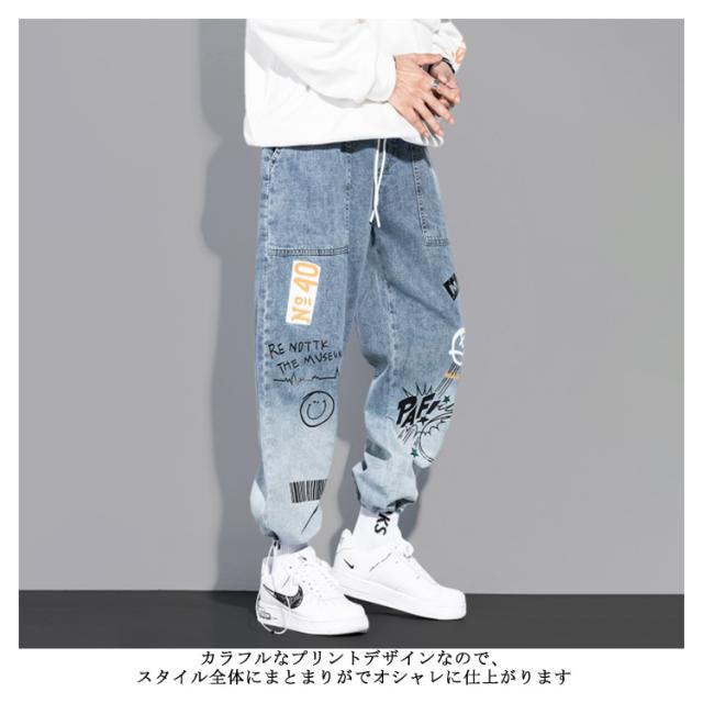 ロングズボン デニムパンツ ジーンズ ワイドパンツ メンズ ボトムス ペンキ風 プリント ゆったり カジュアル スリトート 大きいサイズ 普段着