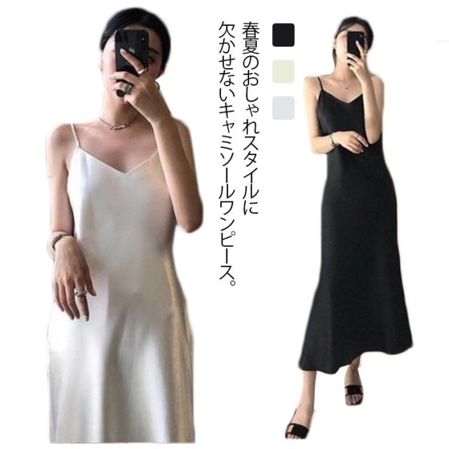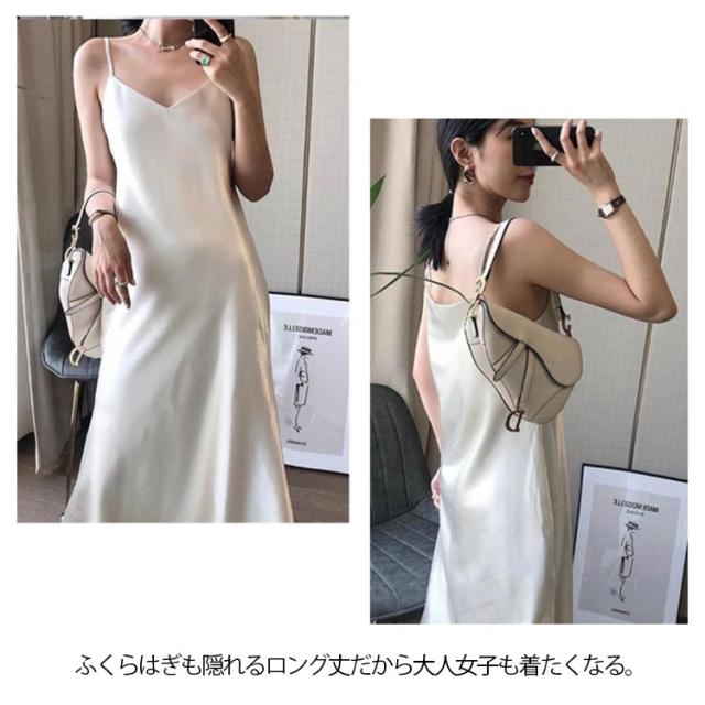 スリップ ワンピース キャミワンピ 送料無料 キャミワンピース シルクタッチ キャミソールワンピース ロング丈 Aライン インナー ドレス 春夏 おしゃれ XS/S/M/L/XL/2XL 無地 送料無料